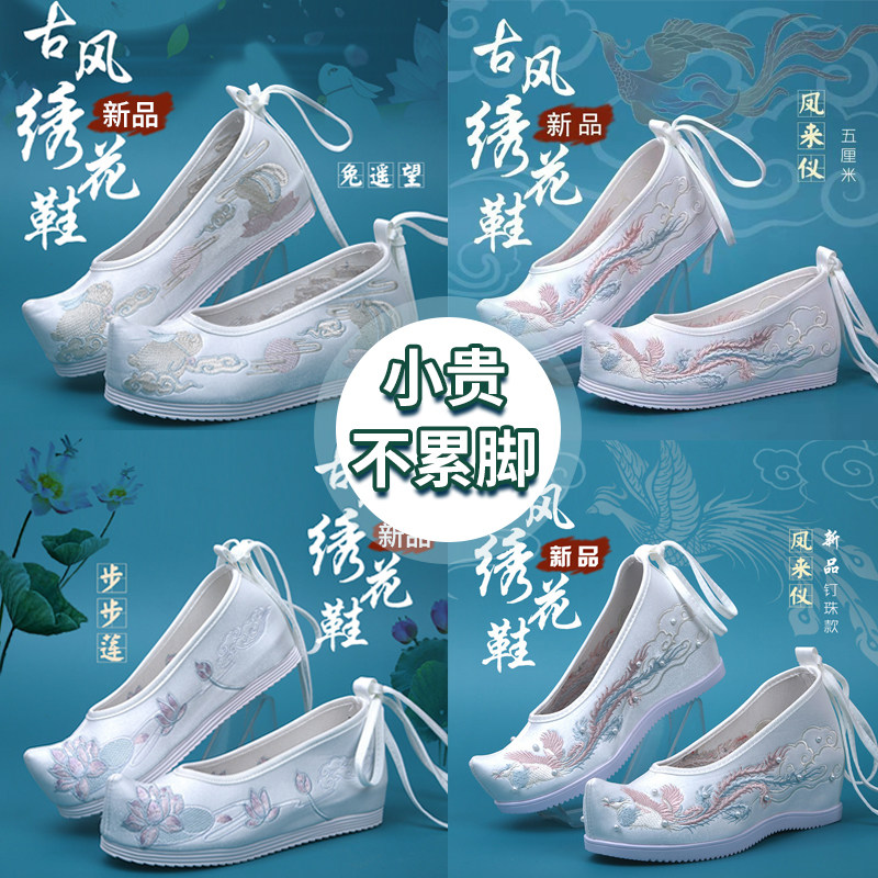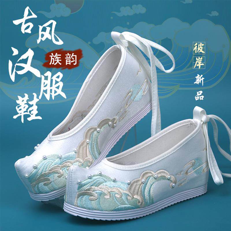 📚 汉服鞋子女古风内增高翘头履绣花鞋平底百搭配古代装明制宋制秋冬