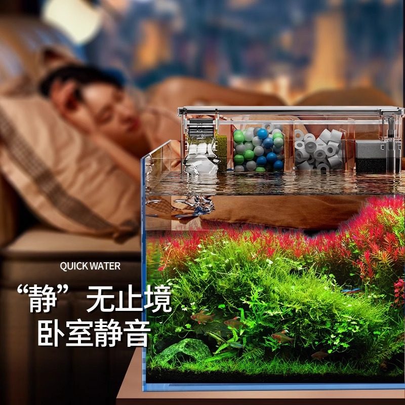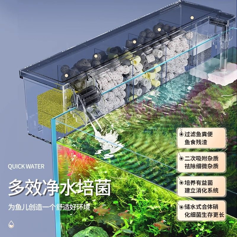 📚 鱼缸上置透明分隔过滤盒净水循环三合一过滤器小鱼缸壁挂式滴流盒