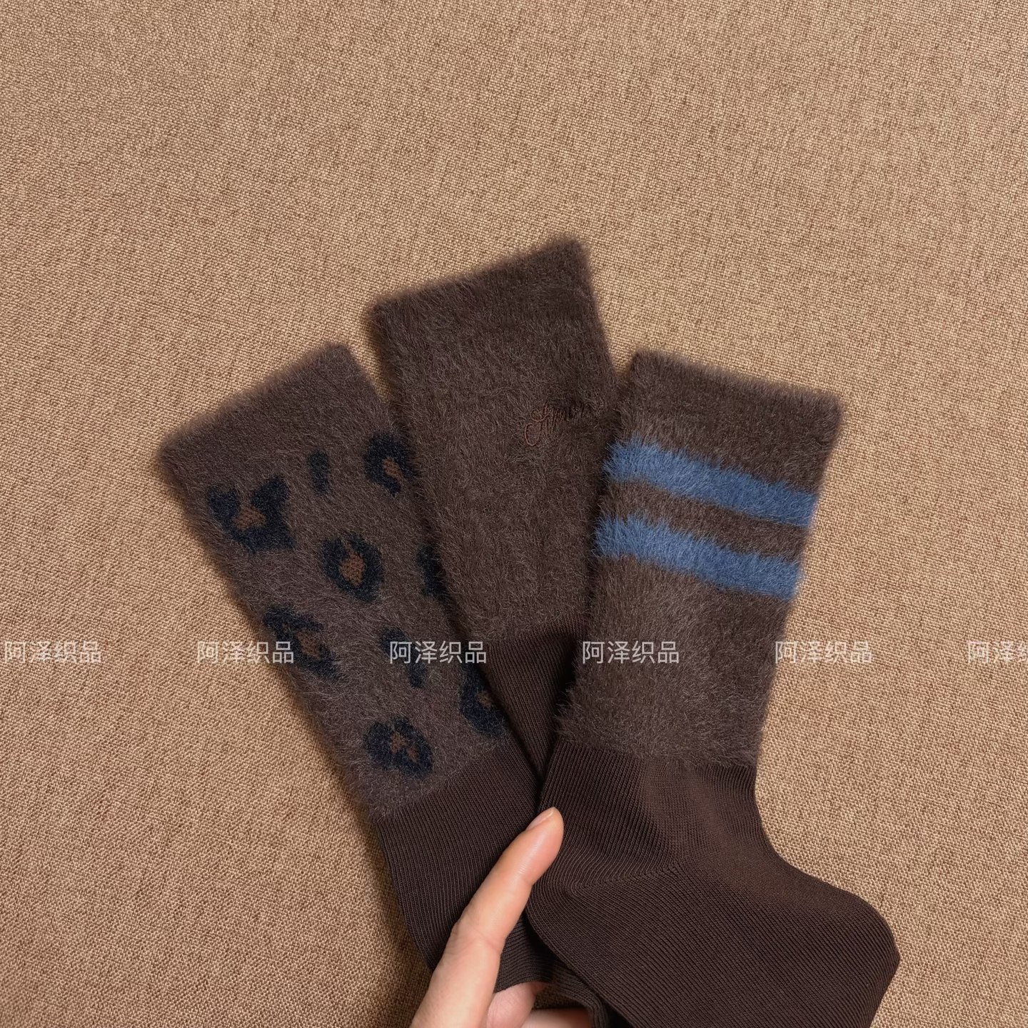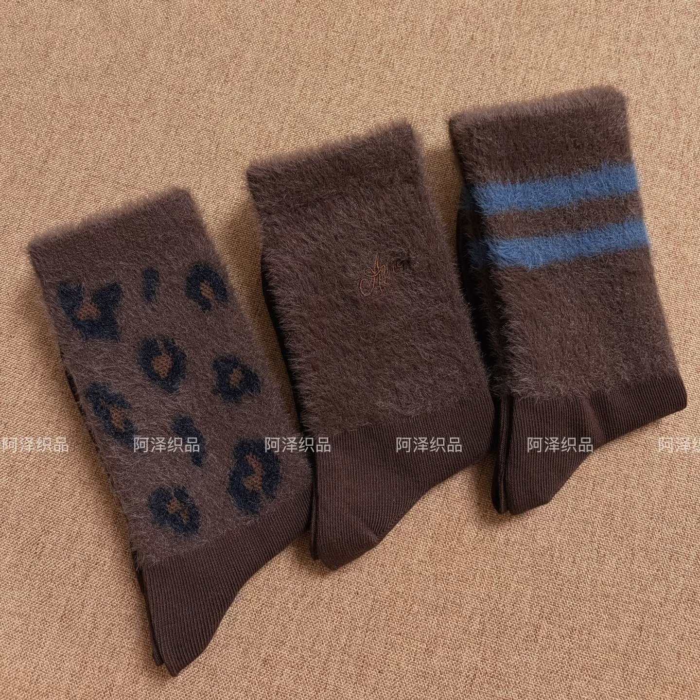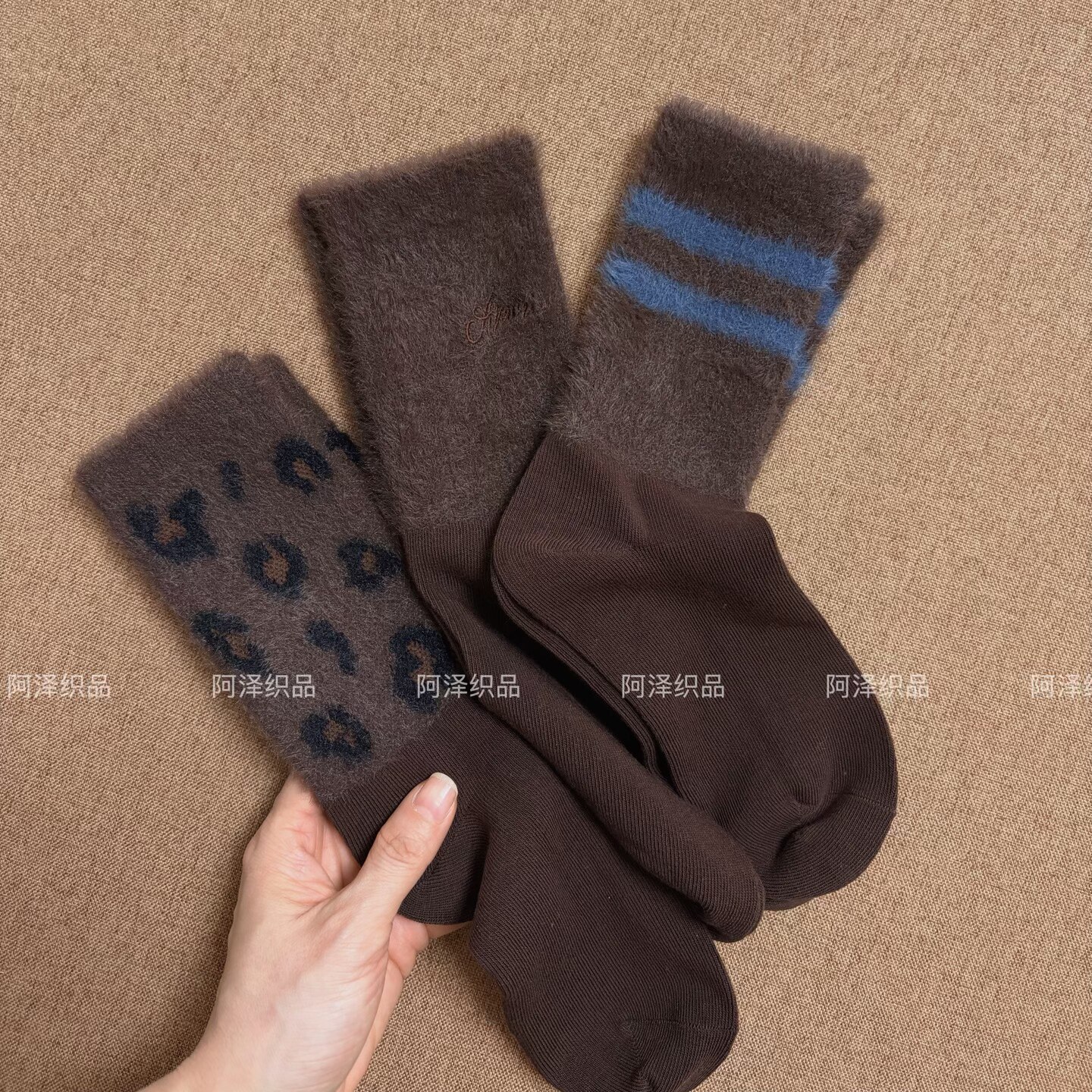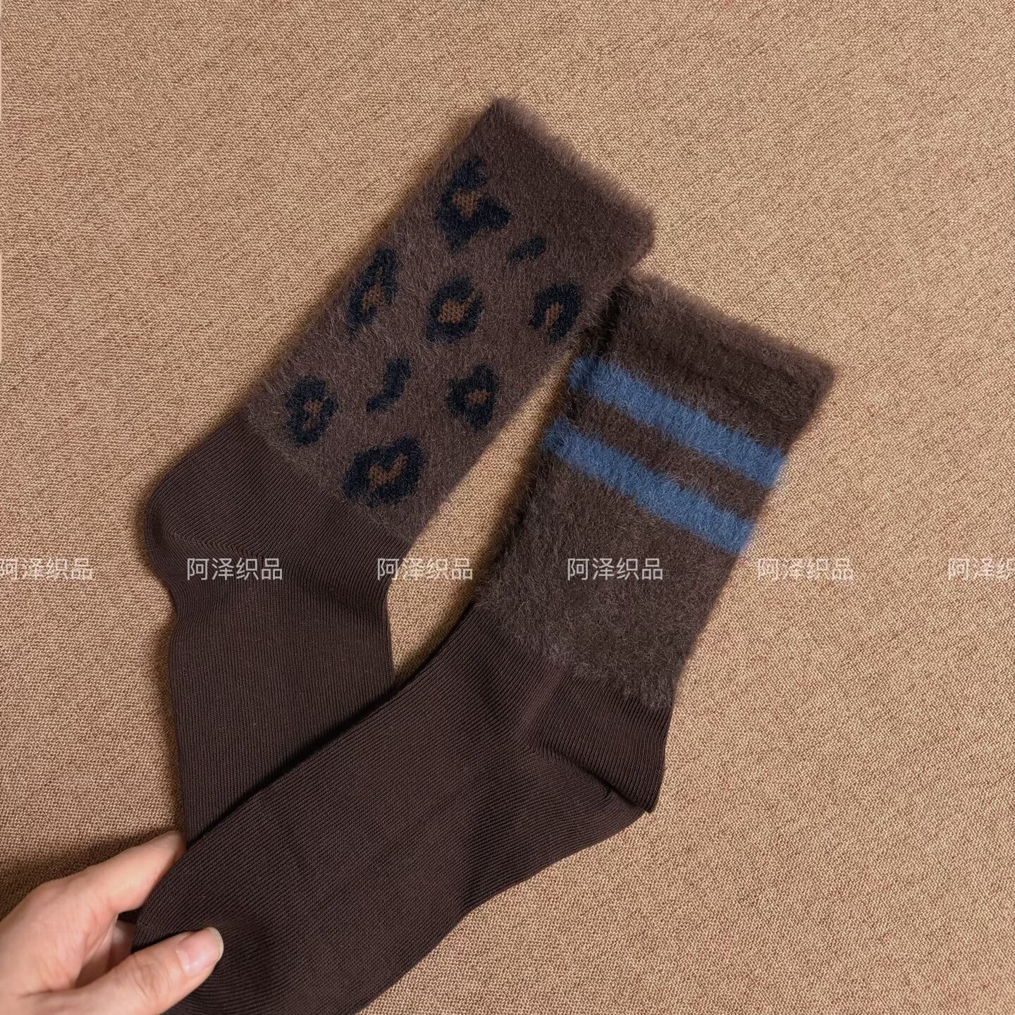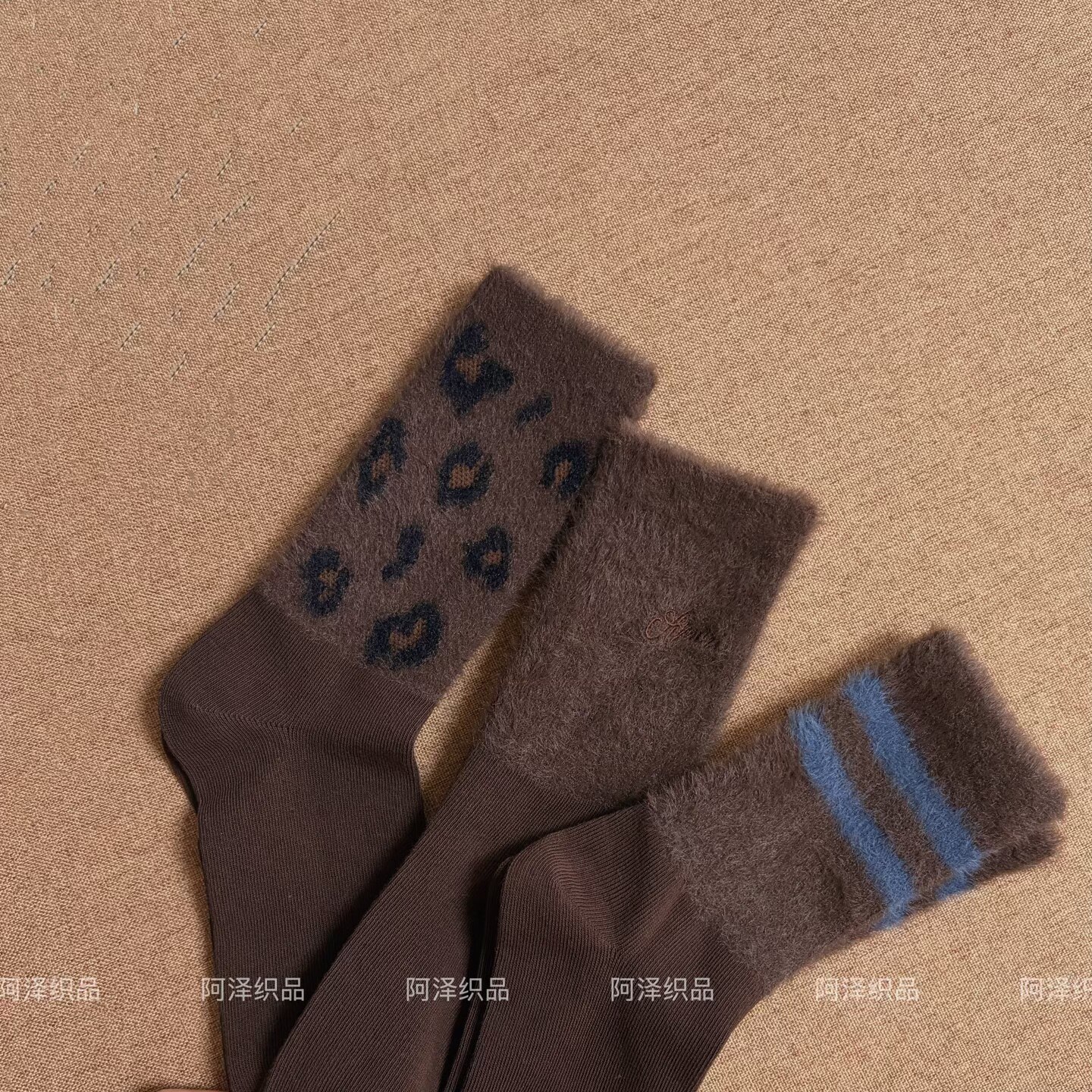 📚 秋冬毛绒袜也太会了~咖啡色系条纹中筒女袜子ins潮个性豹纹长袜棉