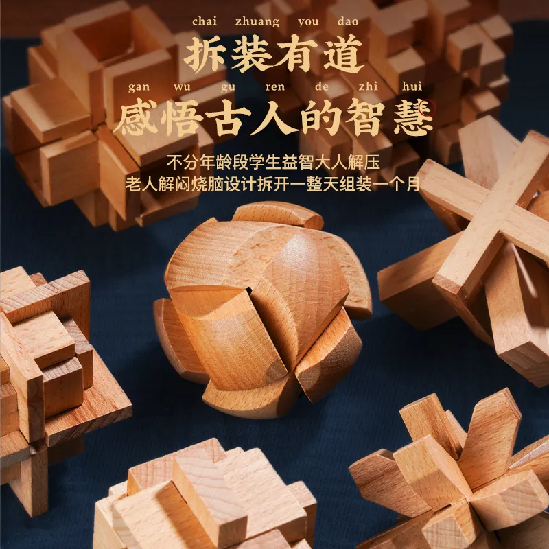 📚 新款孔明锁全套装解压小礼品儿童益智力解锁玩具小学生智力鲁班锁