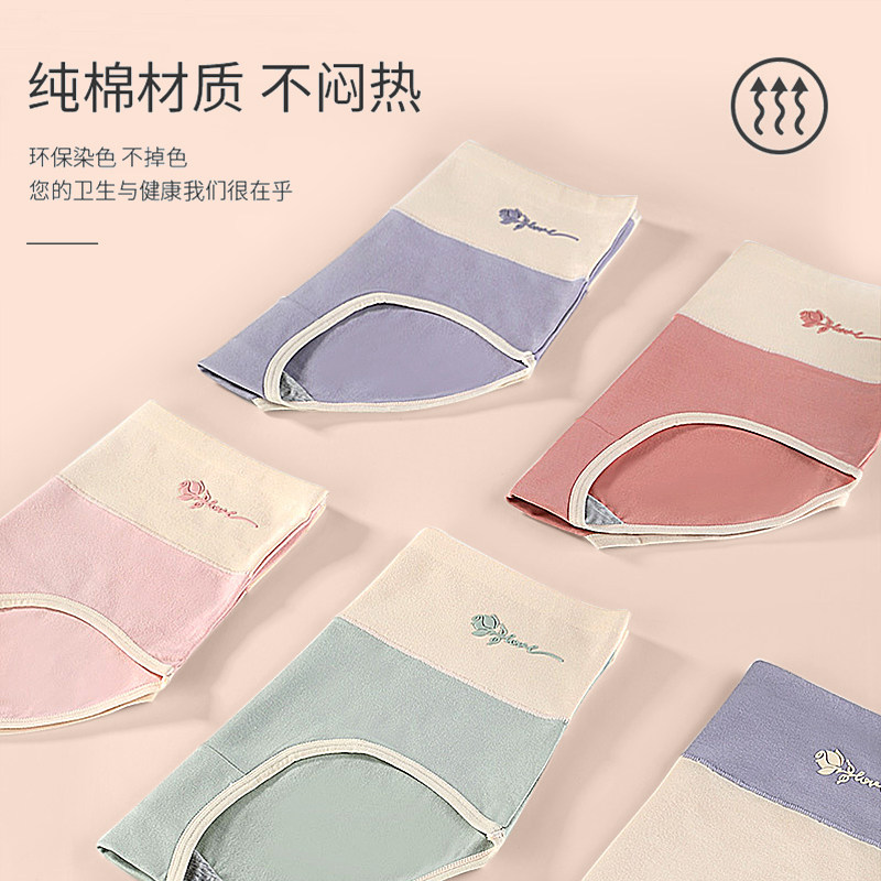 📚 女士撞色高腰内裤全棉裆新款纯棉抗菌大码透气三角裤2025年