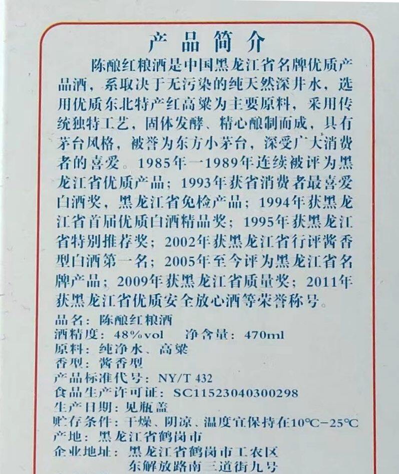 📚 鹤岗陈酿红粮酒48度470ml×6瓶一箱北方酱香龙江酒业鹤岗白酒包邮