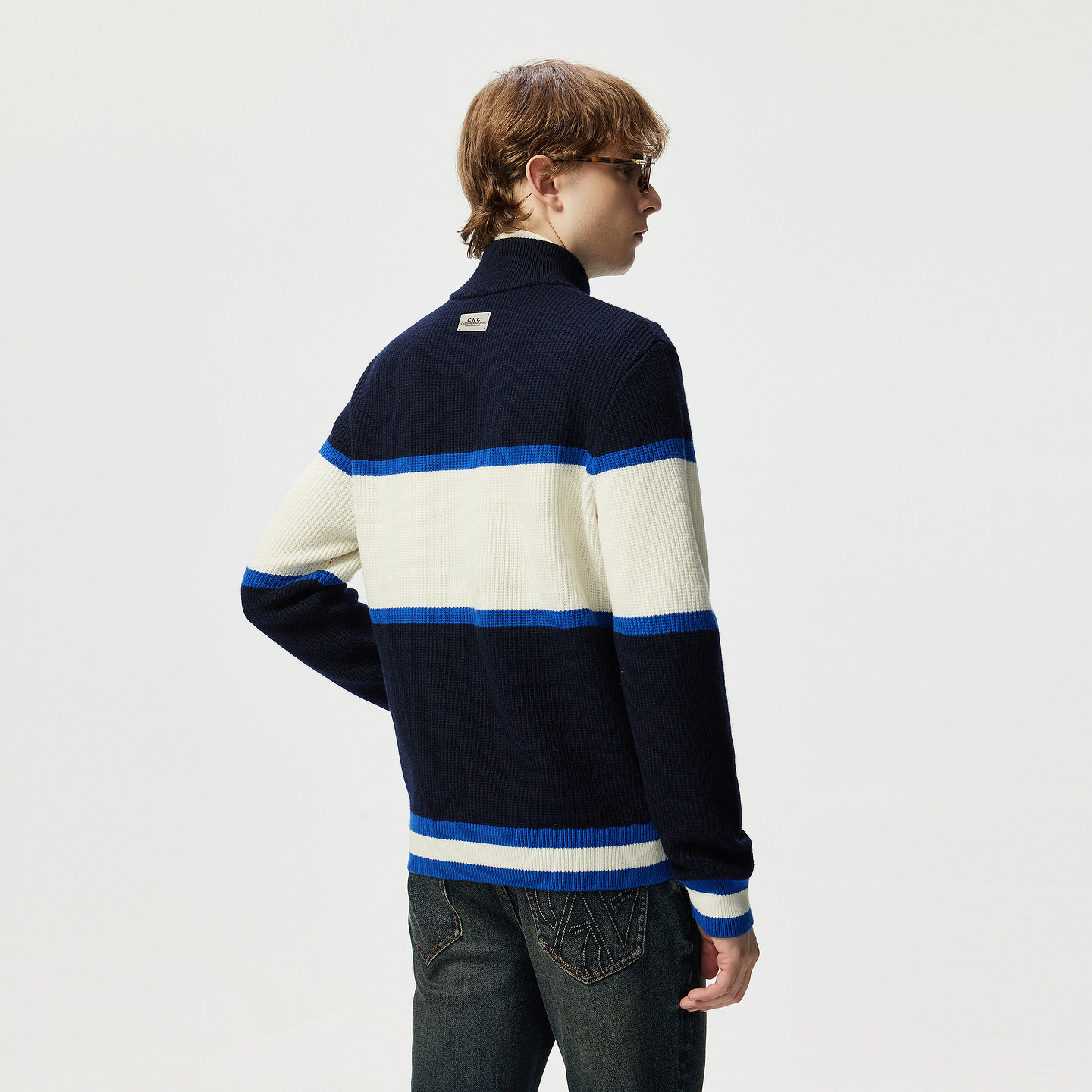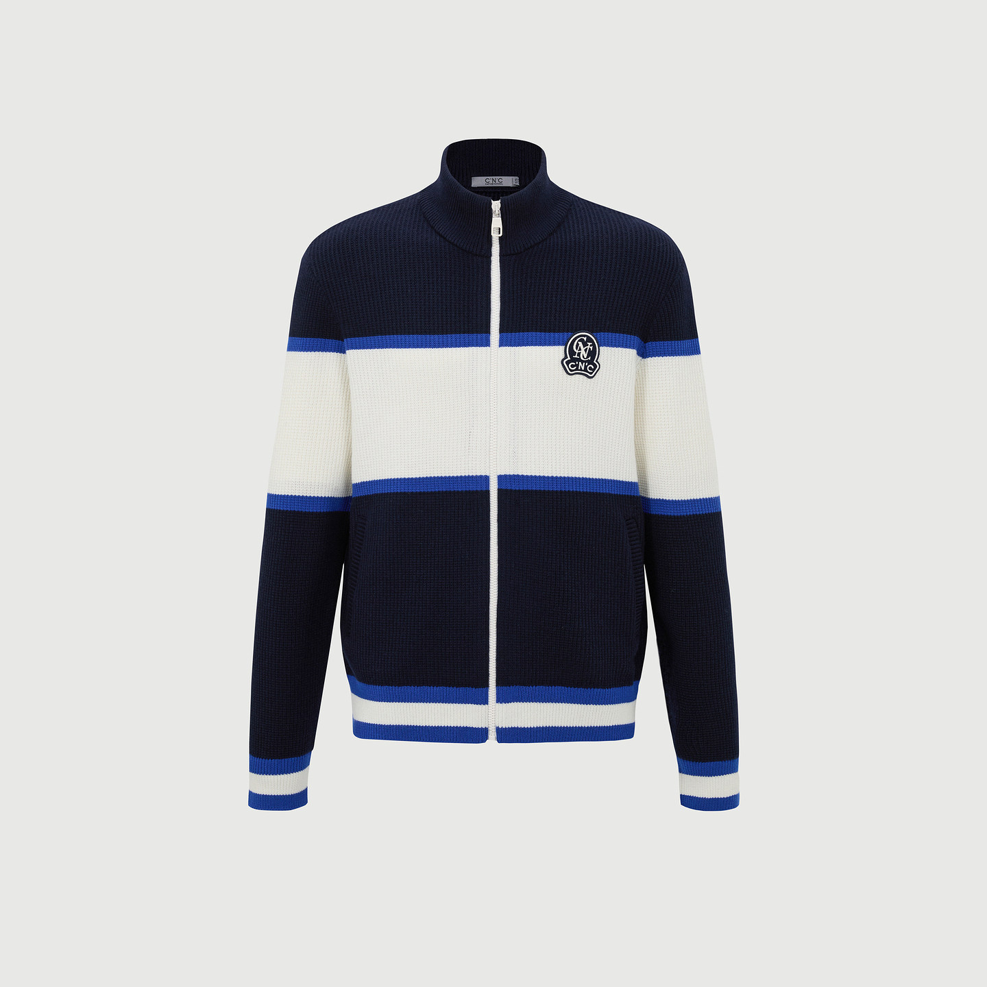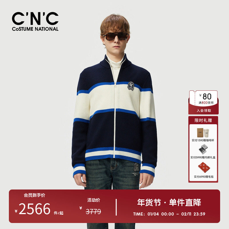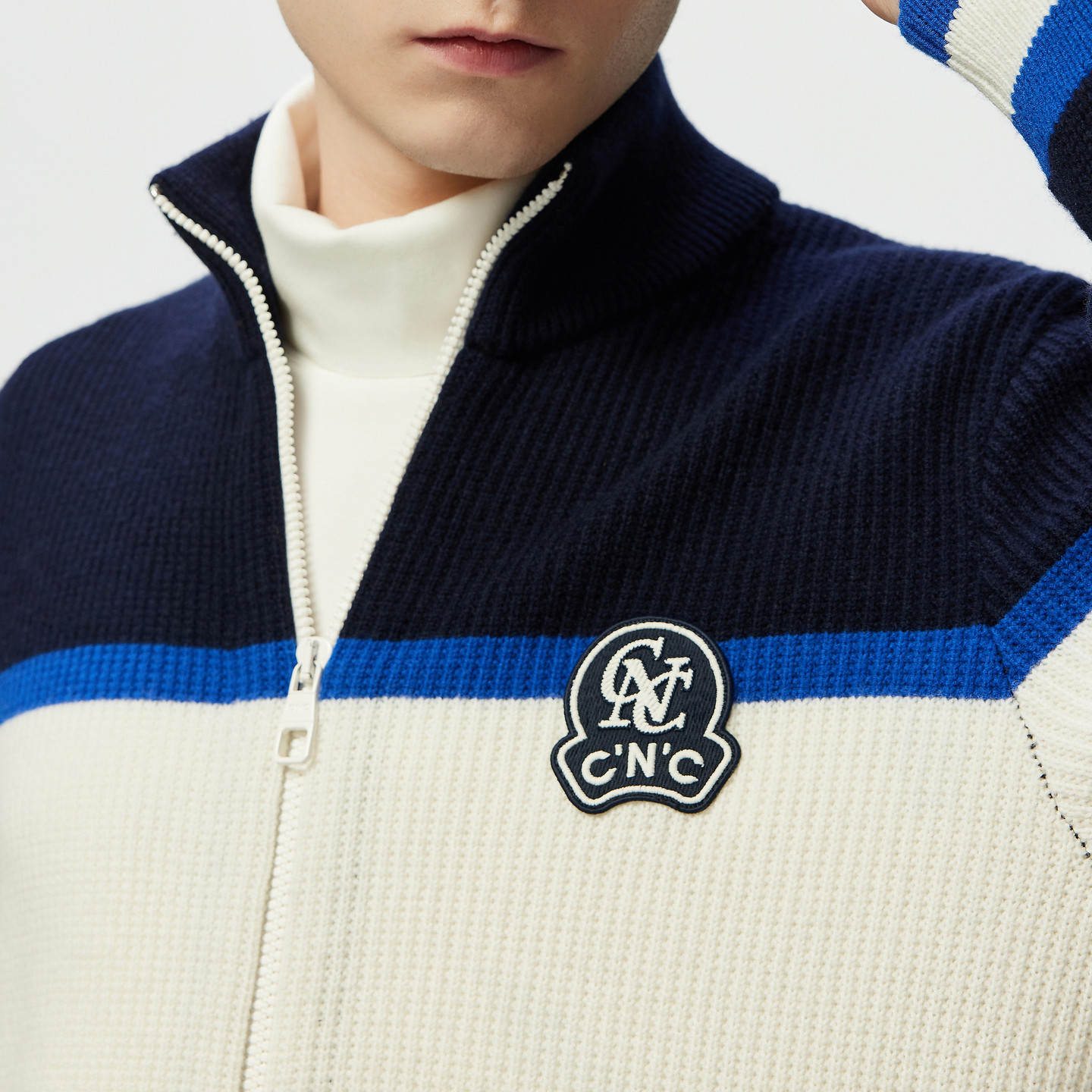 📚 CNC男装奥莱LOGO刺绣标撞色休闲羊毛外套男秋冬新款柔软拉链开衫