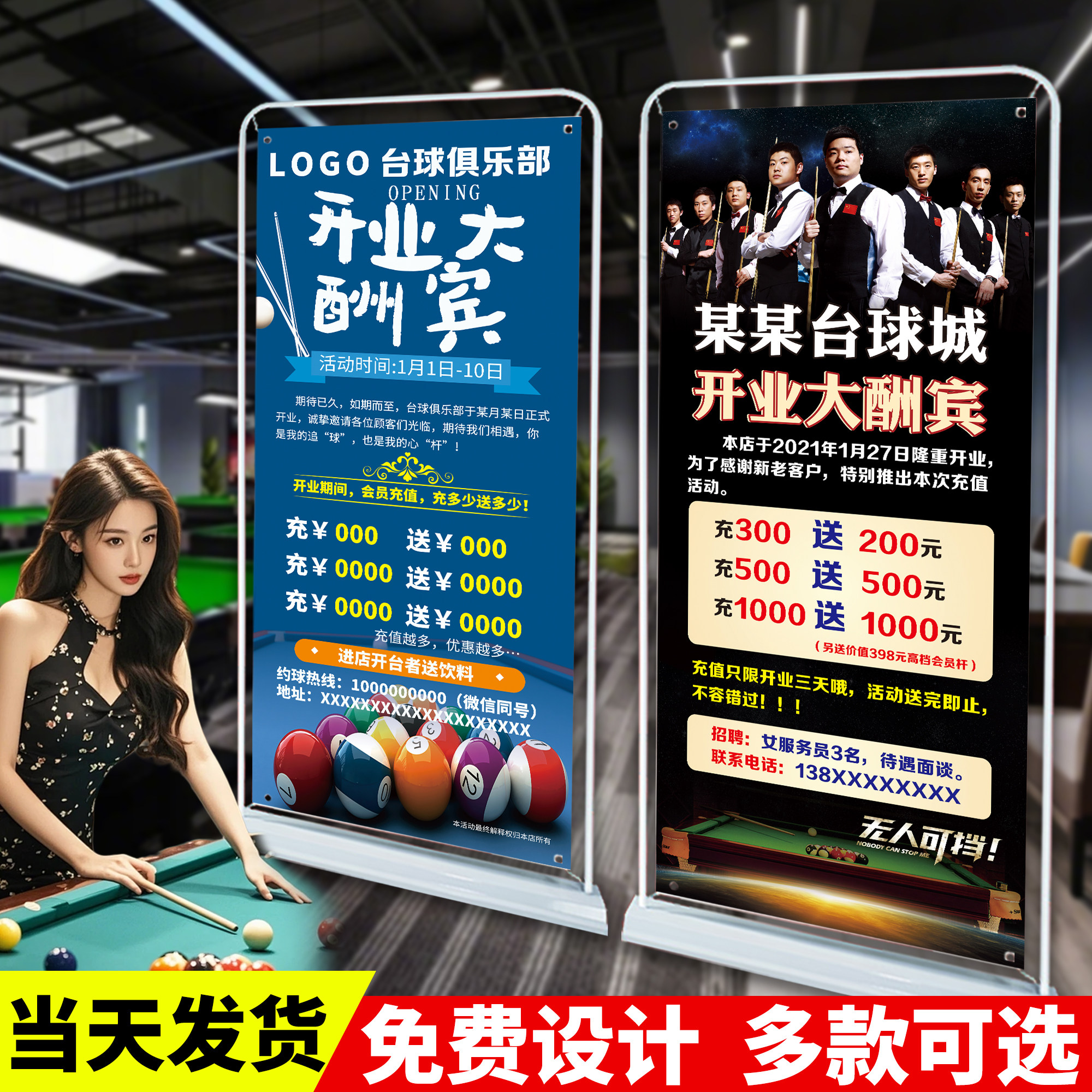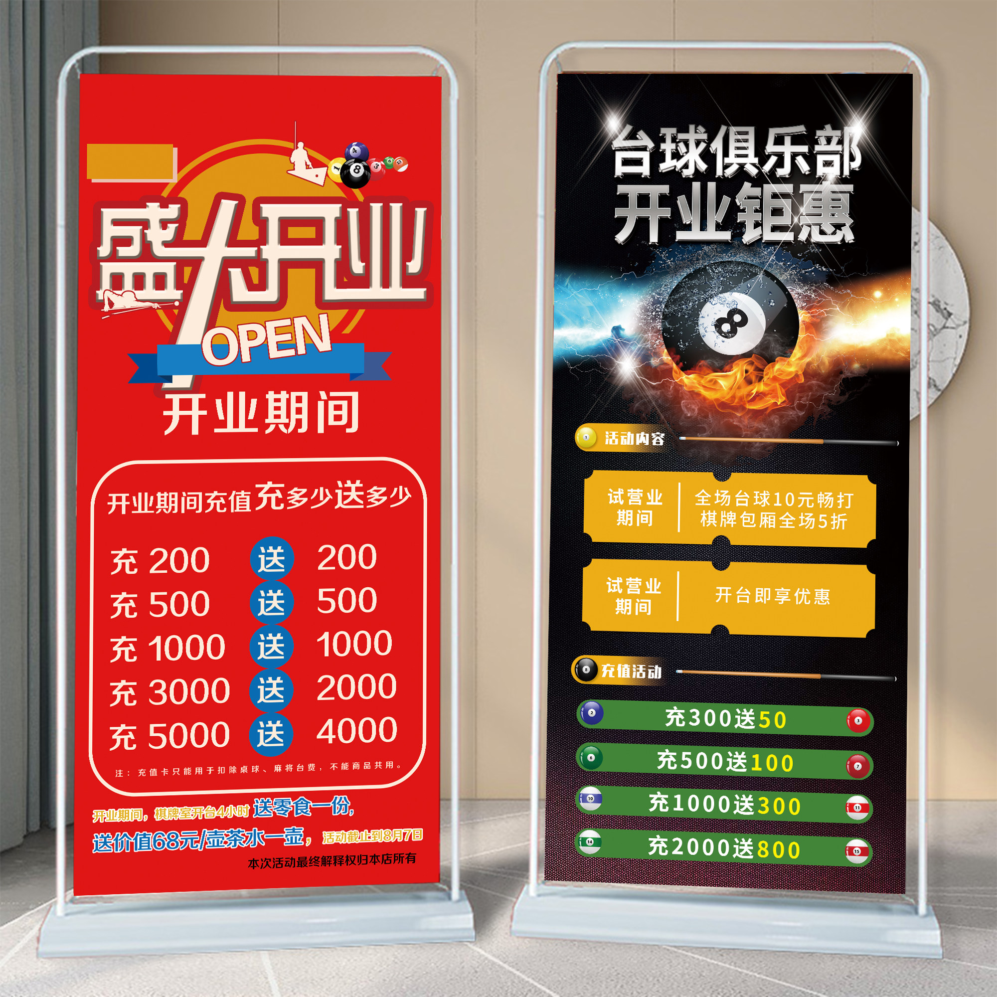 📚 新店开业宣传海报台球厅开业大酬宾会员充值促销活动展示架定制hb