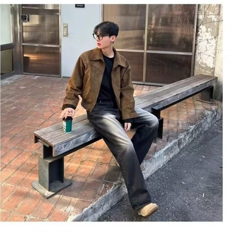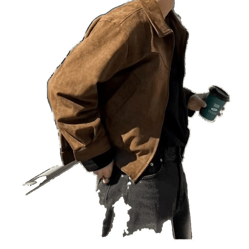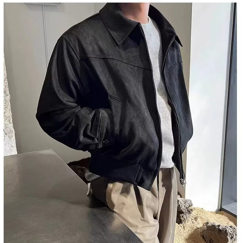 📚 【一折专区】MAMMJUDX秋冬季韩国男装短款宽松翻领加绒拉链麂皮绒