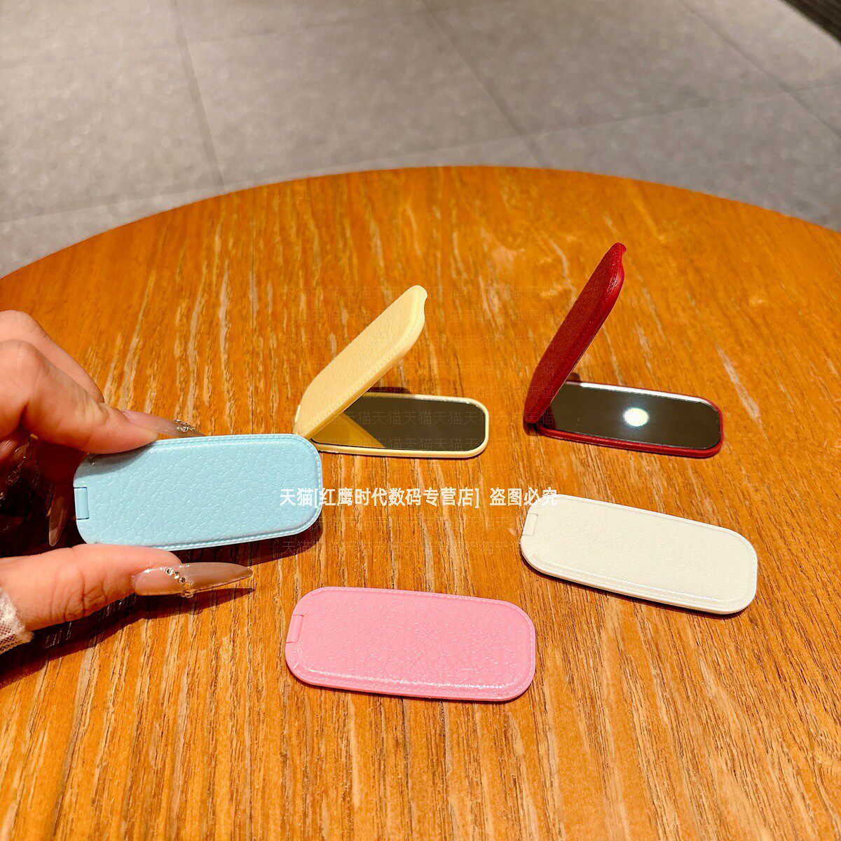 📚 翻盖迷你小镜子粘贴手机支架超薄小巧补妆镜黏贴化妆镜背贴桌面横竖支撑手机架懒人追剧看视频神器通用配件女