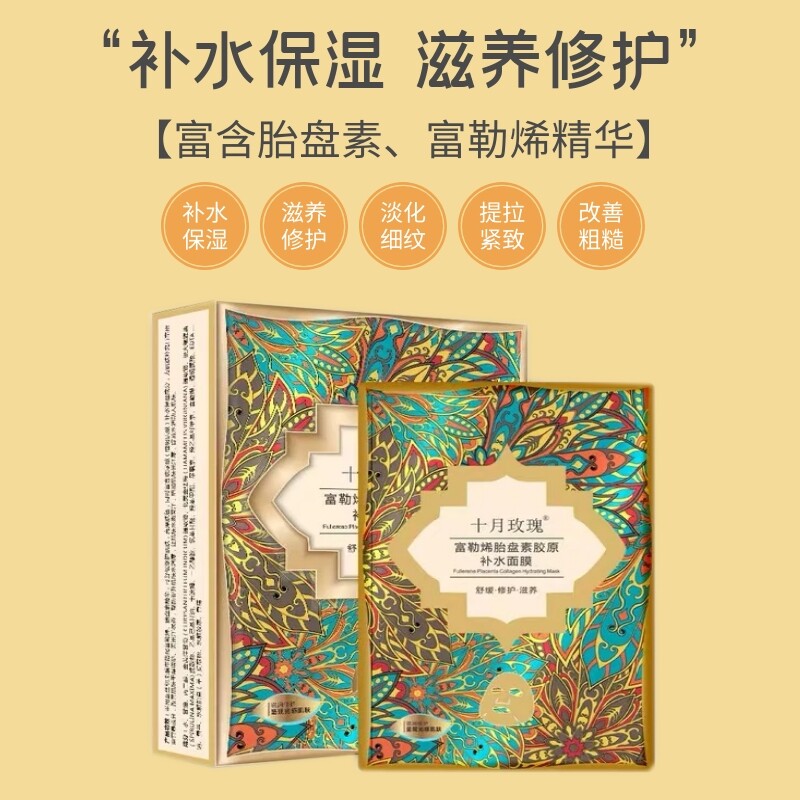 📚 正品十月玫瑰富勒烯胎盘素胶原补水面膜二裂酵母保湿紧致修护精华