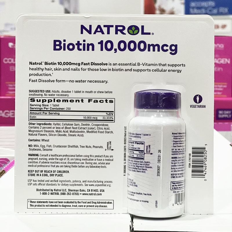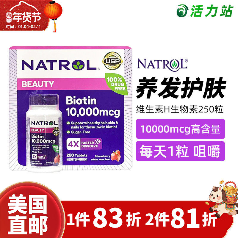 📚 美国直邮 Natrol biotin生物素10000mcg 成人维生素H养护头发60粒