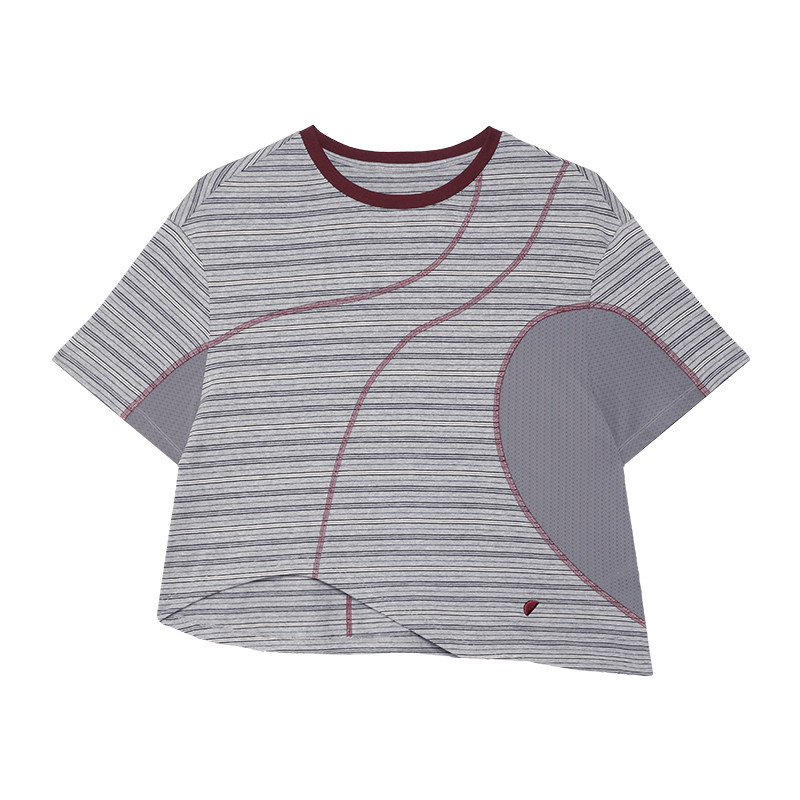📚 纯棉 半圆女装[运动]2026夏季宽松休闲撞色拼接不对称T恤女上衣