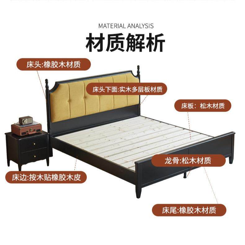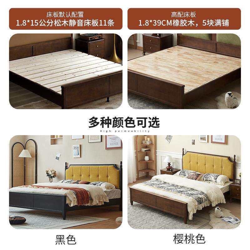 📚 中古风实木床卧室简约1.5米简美单人床复古美式1.8米软靠双人床