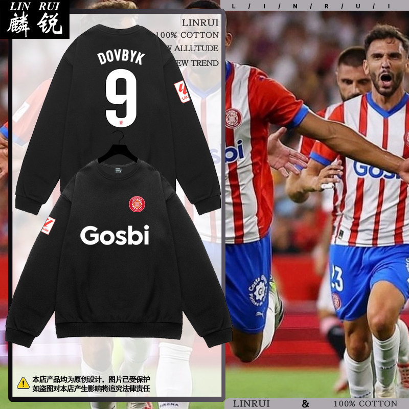 📚 23-24赫罗纳队服吉罗纳西甲足球衣服圆领卫衣套头男女长袖球迷服