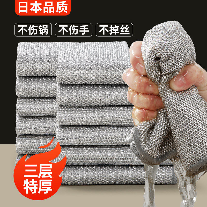 📚 日本钢丝洗碗布不沾油钢丝球抹布厨房专用金属丝清洁布双面银丝