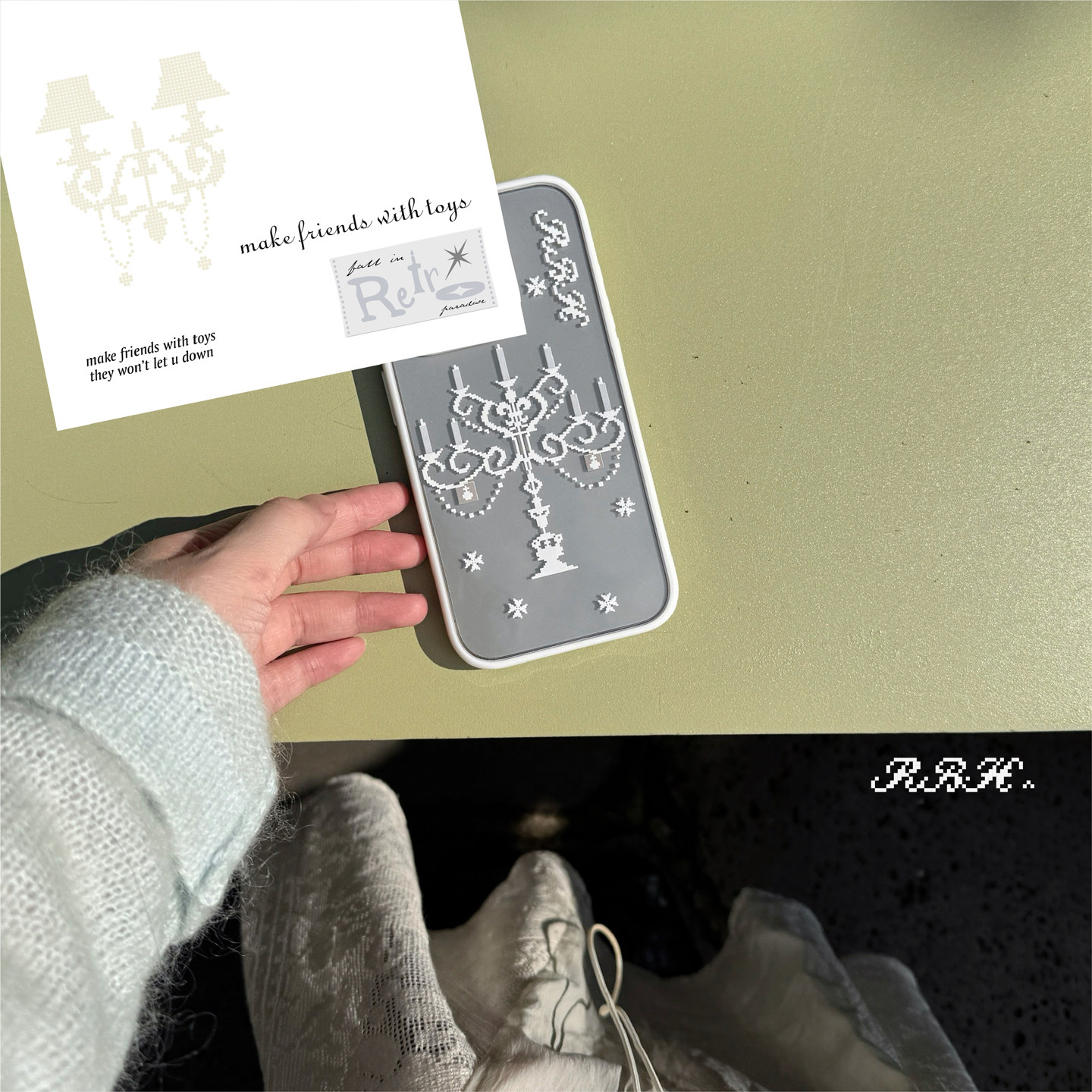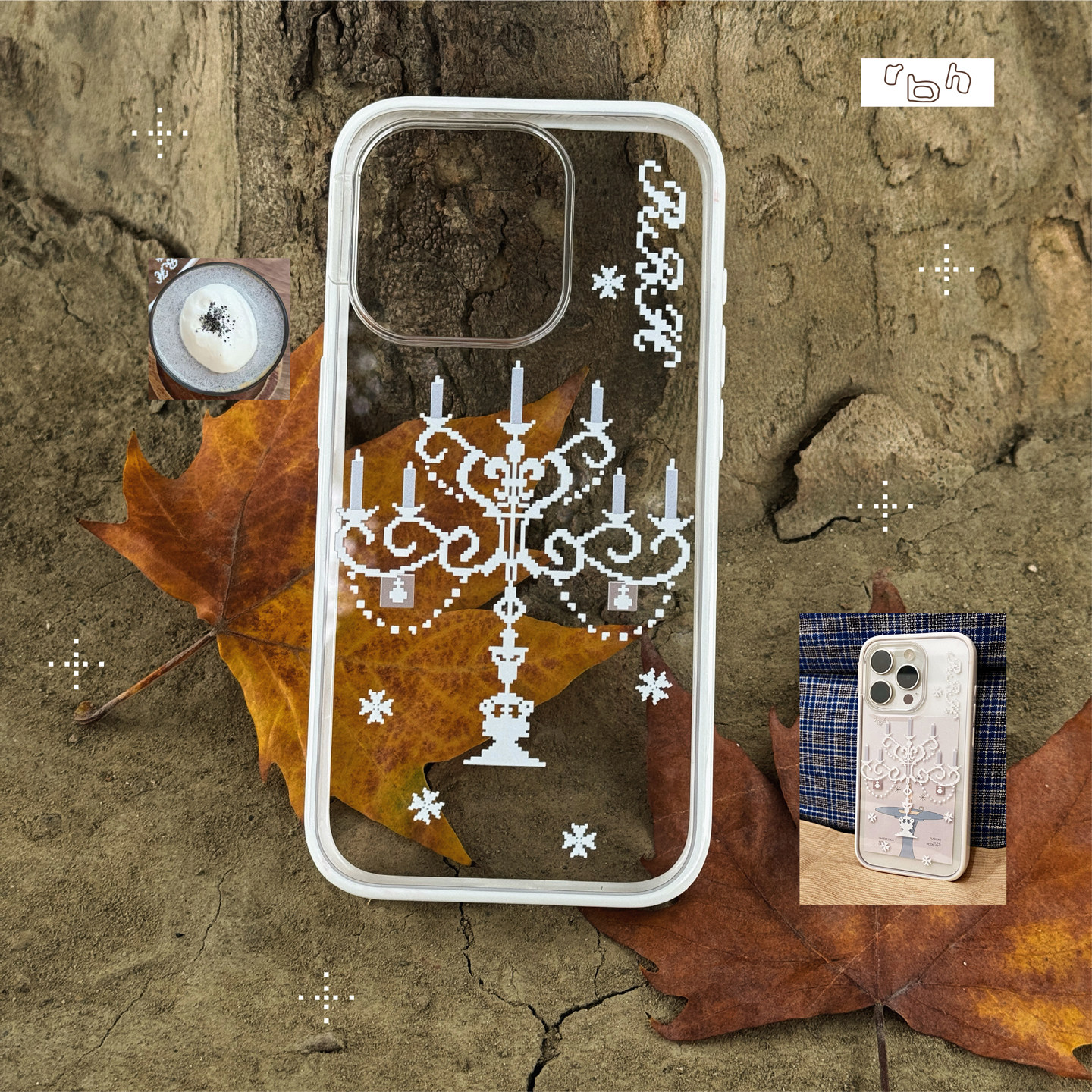 📚 rbh原创[像素烛台]复古简约适用苹果17promax手机壳白色边16pro/15日韩ins百搭全包大孔防摔