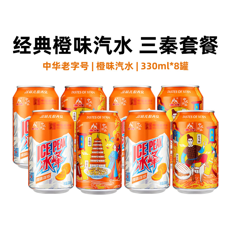📚 西安冰峰橙味汽水330ml*8罐陕西特产老字号怀旧国货汽水碳酸饮料
