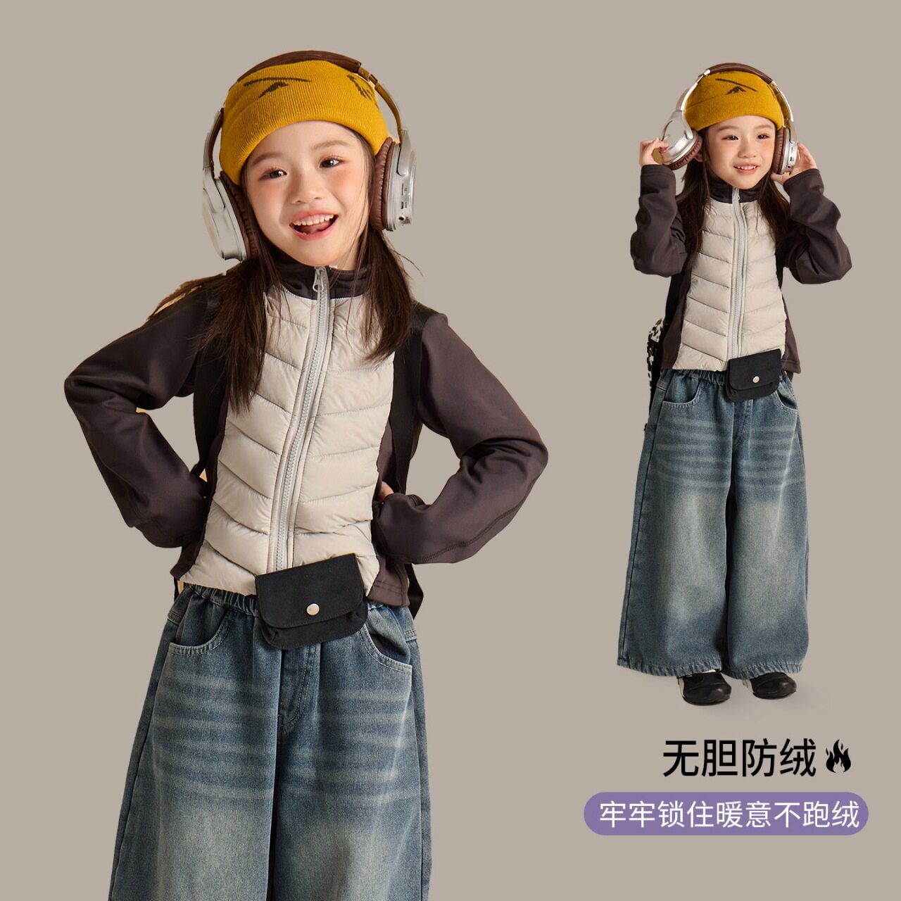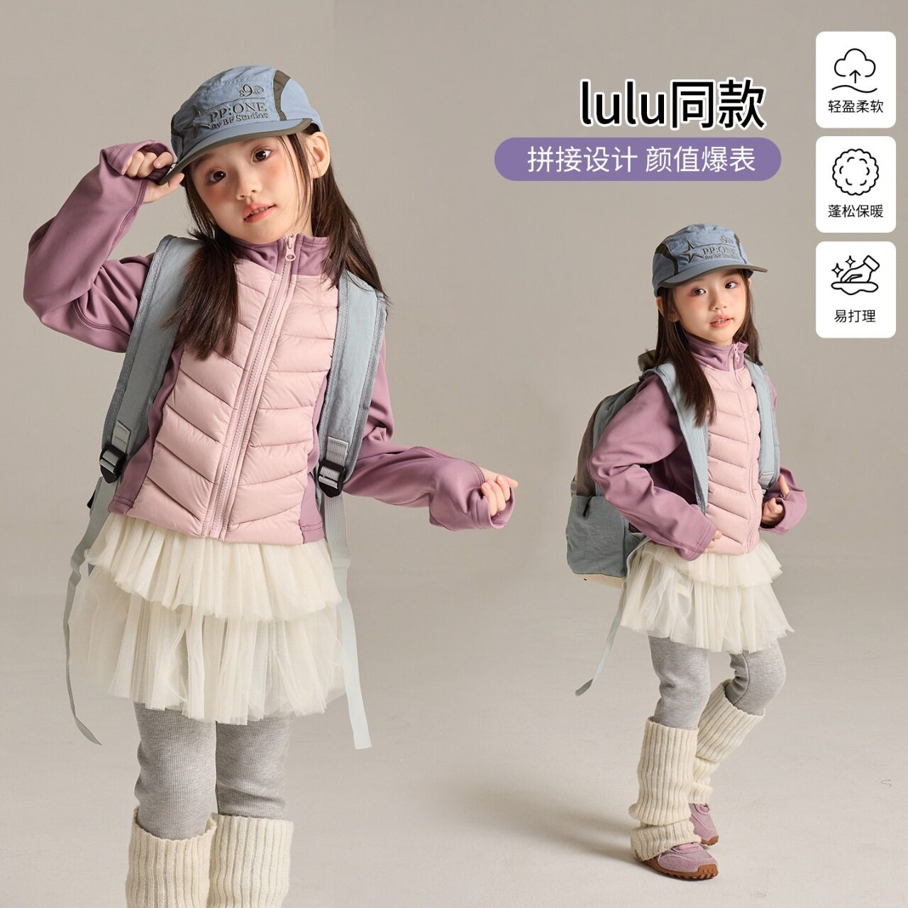 📚 大小卷儿童羽绒服25秋冬新女童韩版lulu风鲨鱼批拼接内搭校服神器