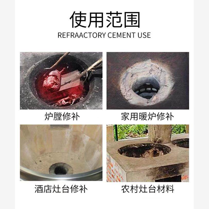 📚 耐火土炉膛专用柴火竈锅炉防火泥高温浇注铝酸盐翻新速乾修补材料