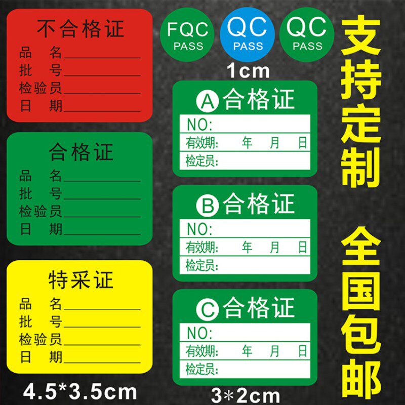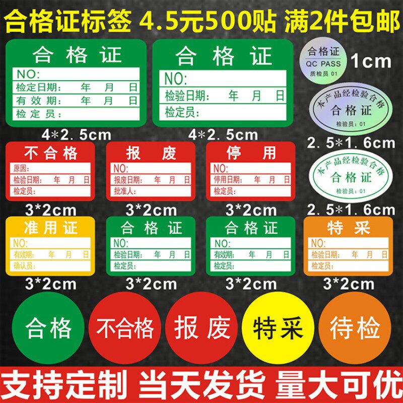 📚 不干胶合格证标签贴纸不合格绿色计量检验待定特采质检定压力表X