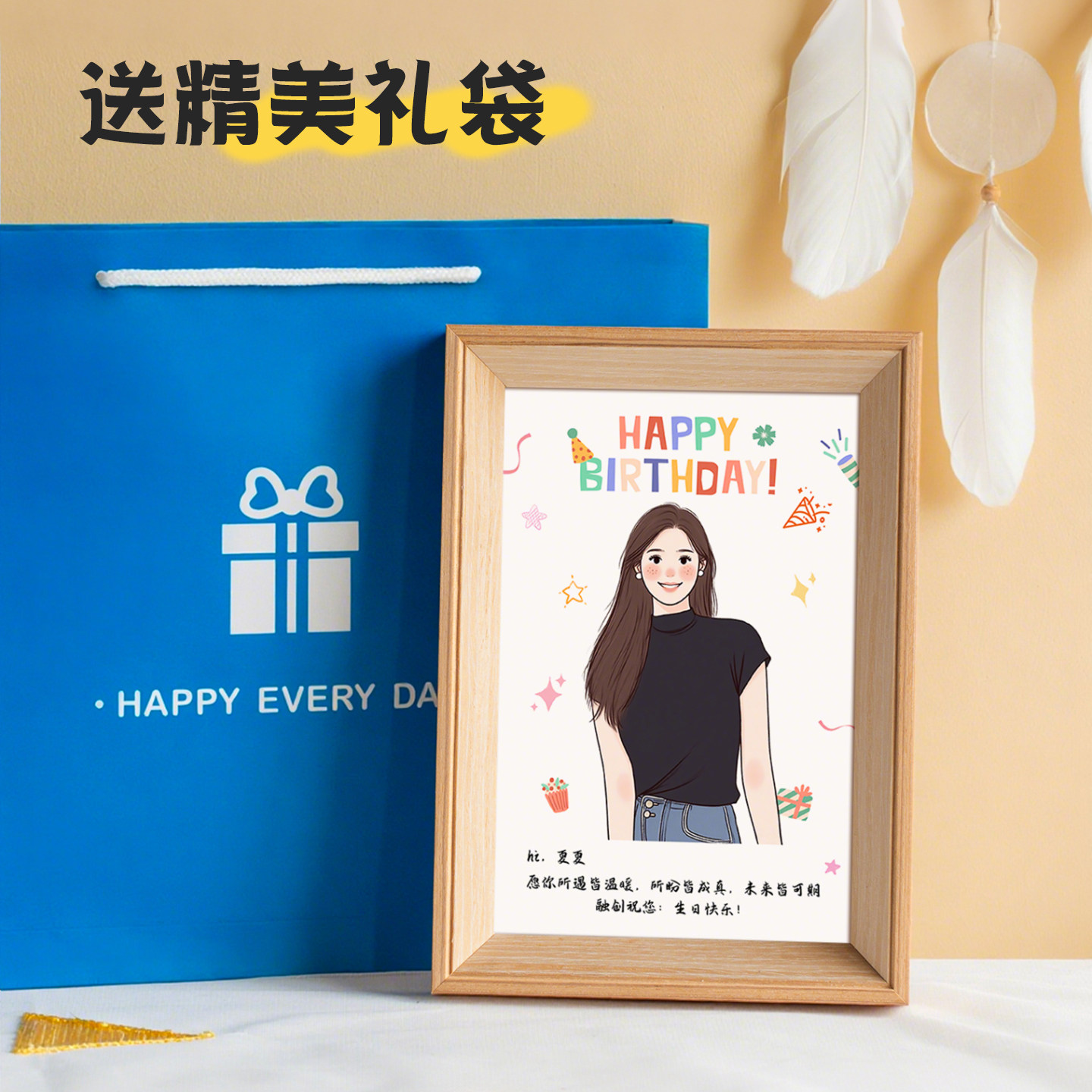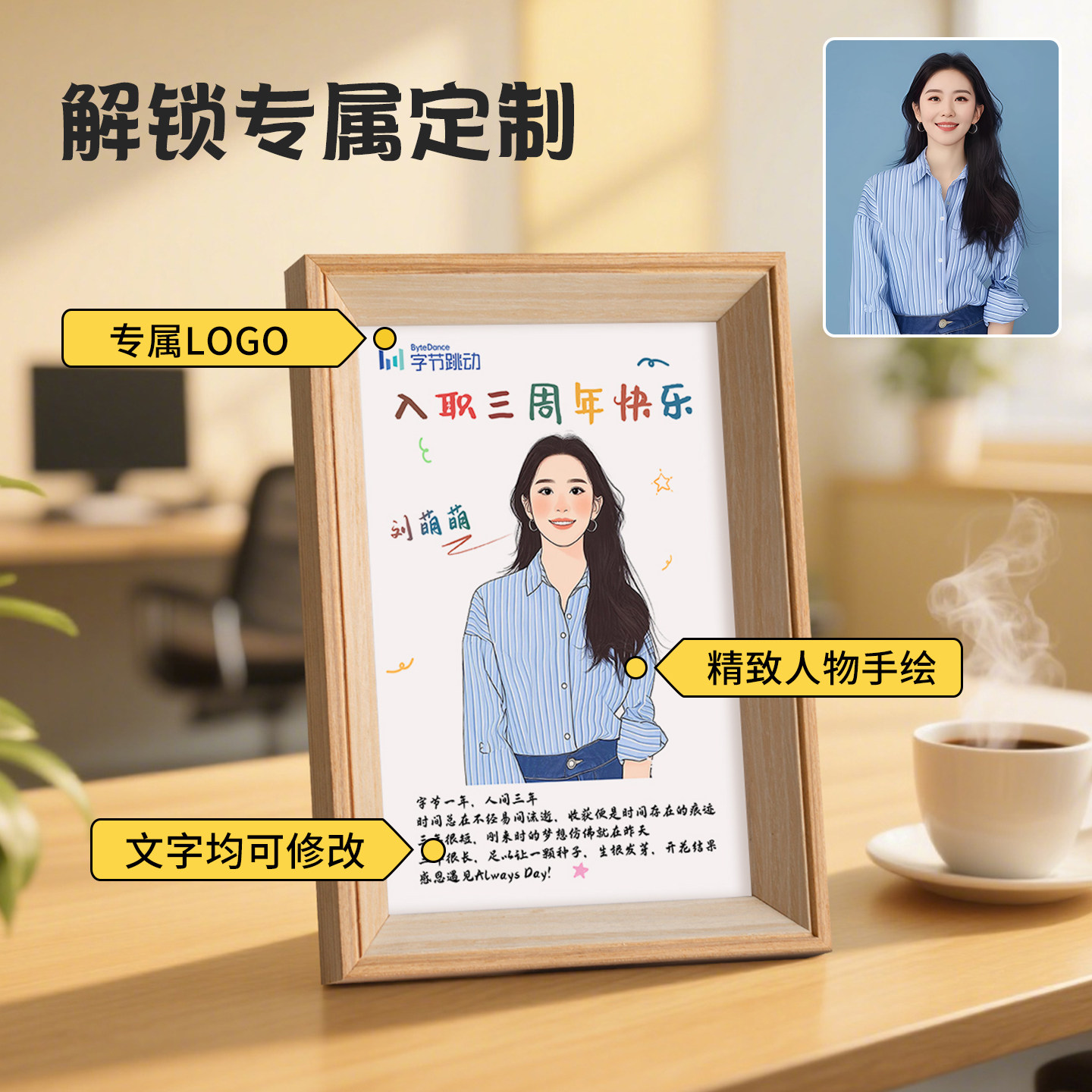 📚 毕业礼物送老师定制表彰照片手绘相框生日退休入职员工周年庆纪念
