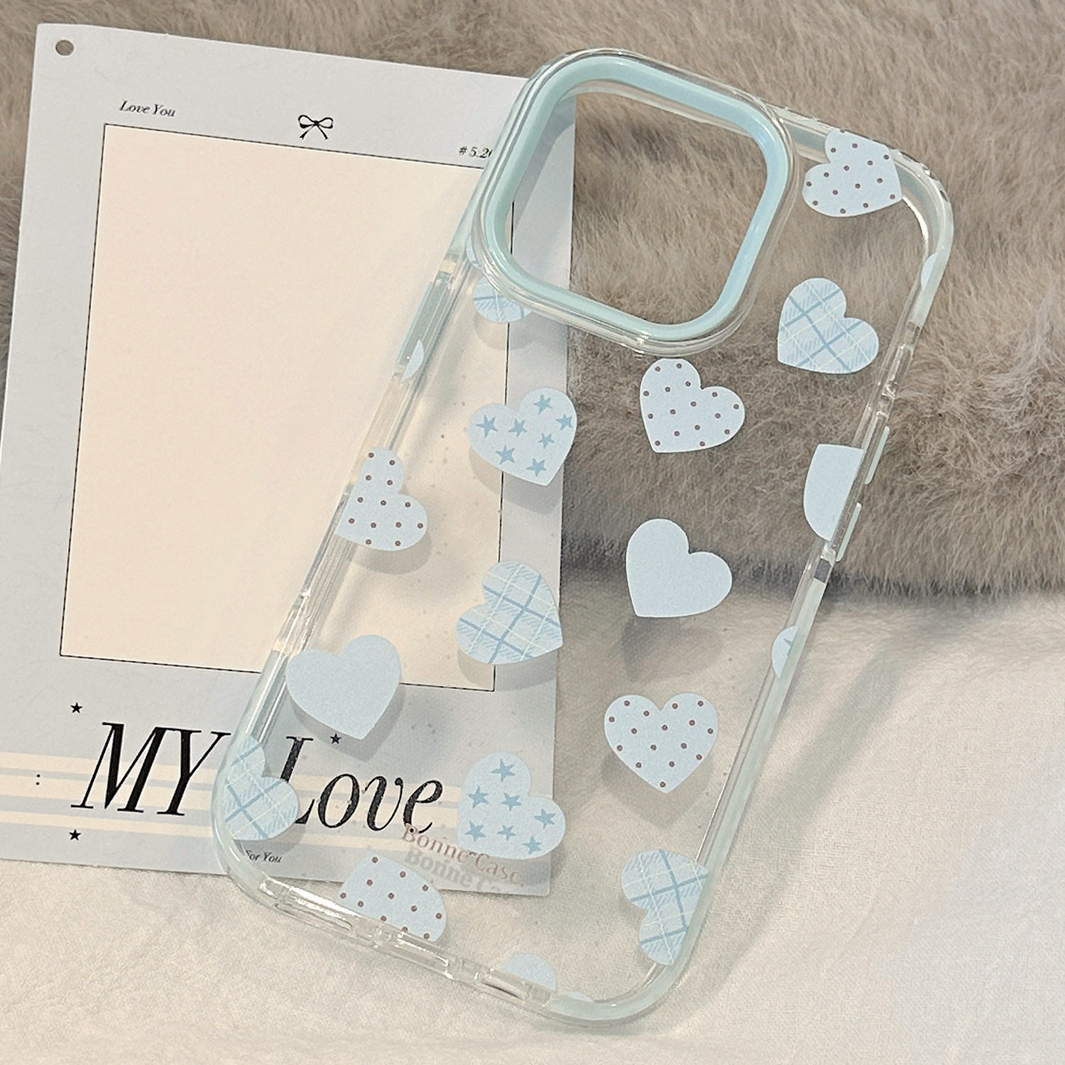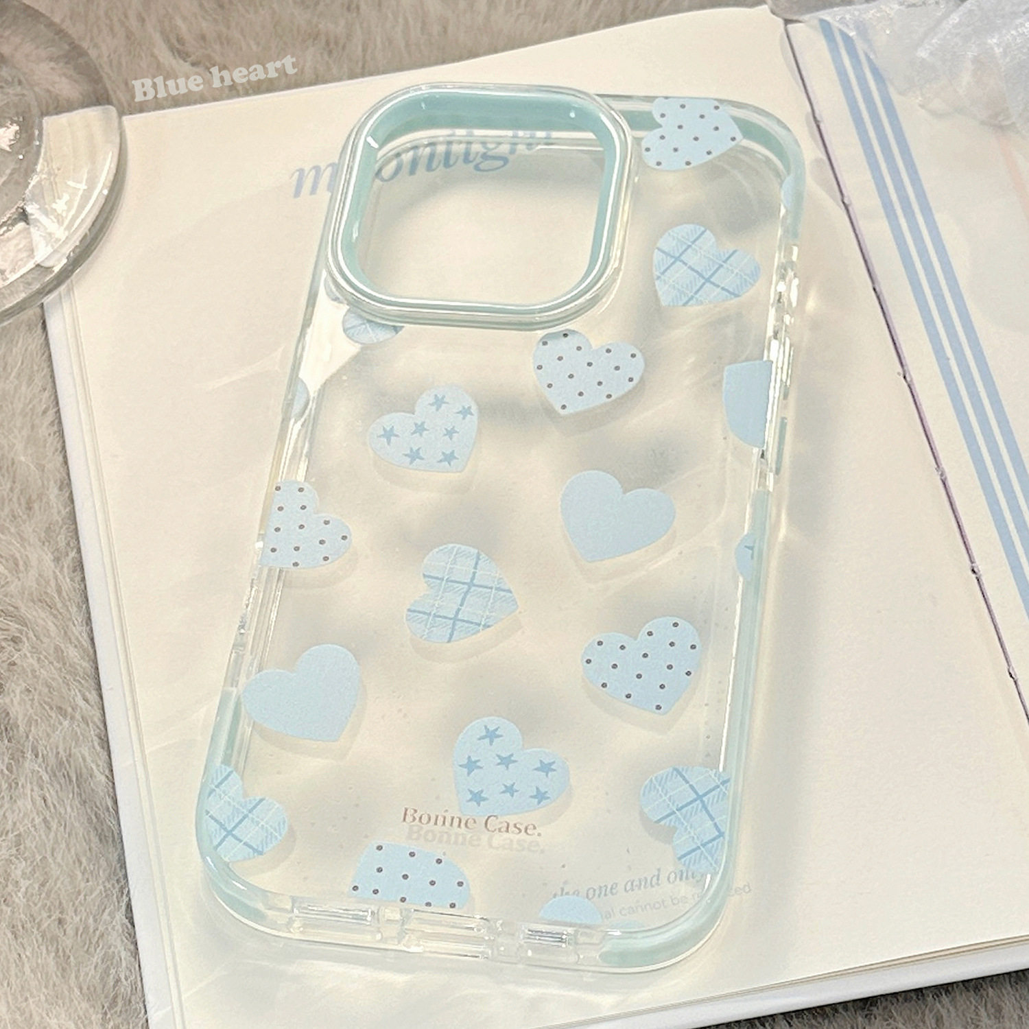 📚 Blue heart love transparent clear case适用iphone 11 12 13 14 15 16 17 pro max