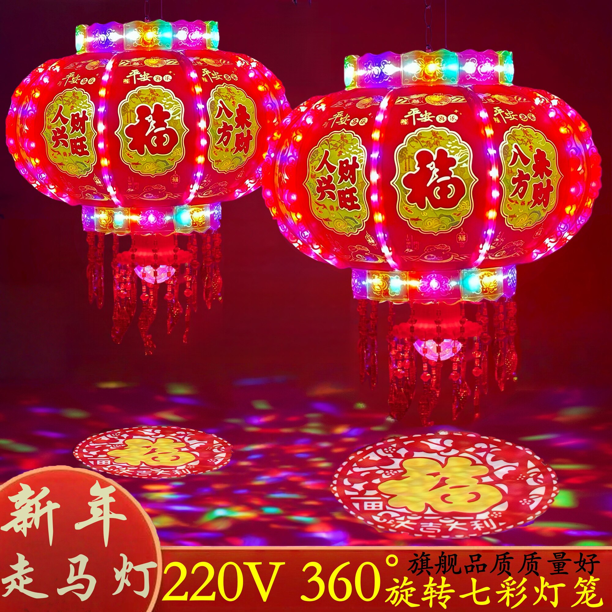 📚 2026新款旋转灯笼七彩led电动走马灯阳台大门口宫灯挂饰新年装饰