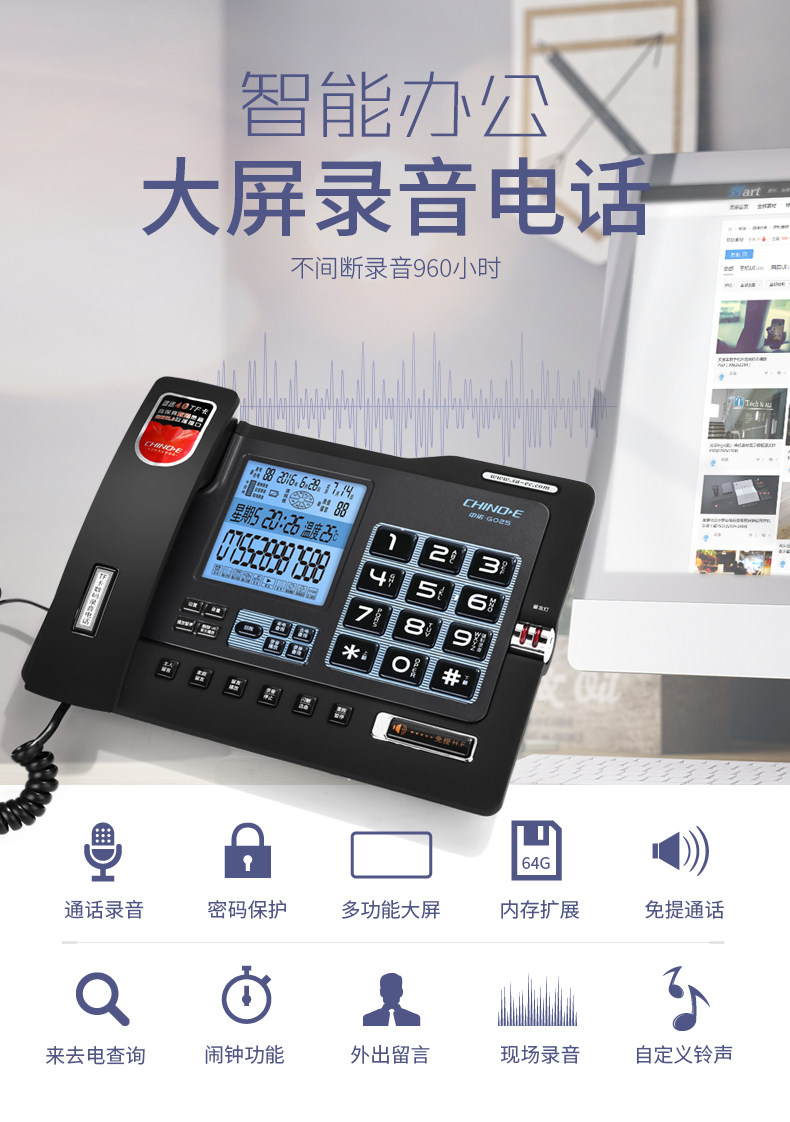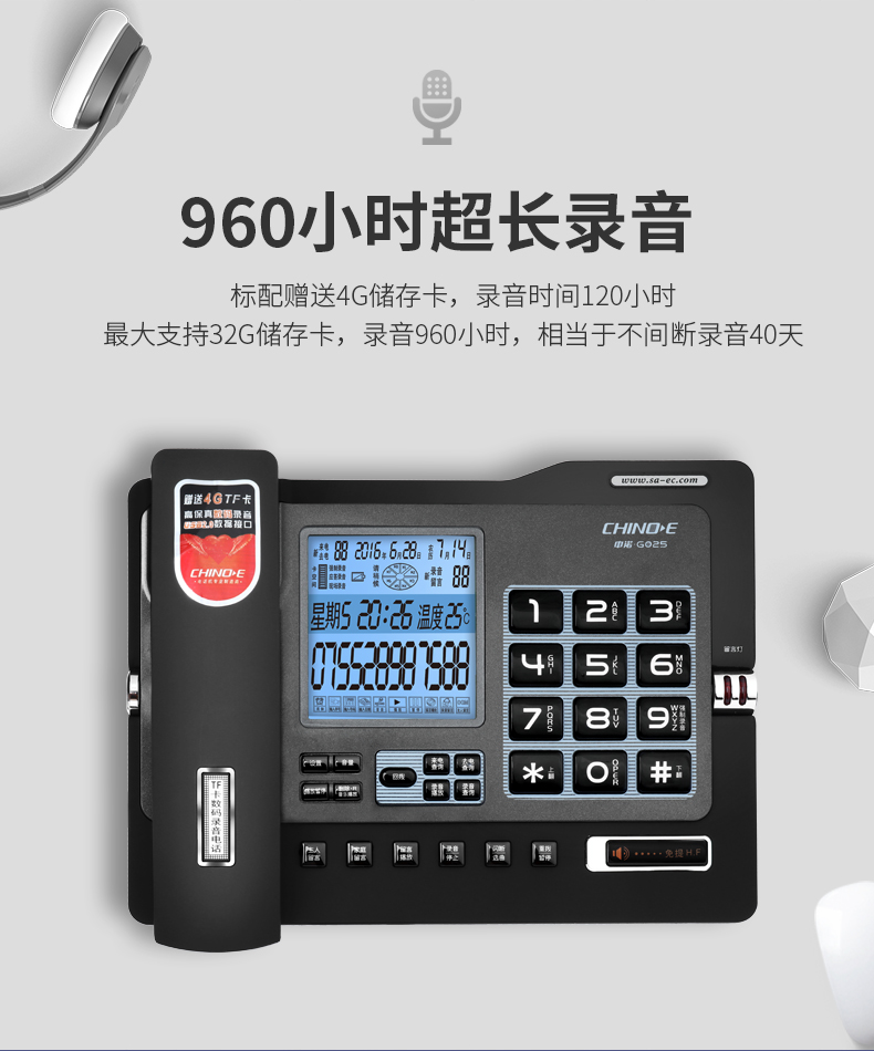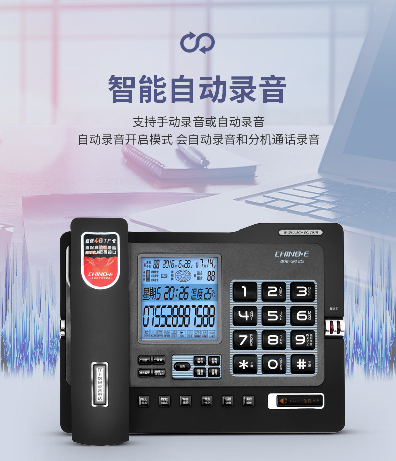 📚 中诺G025自动录音电话机 来电显示免提商务办公家用固定电话座机