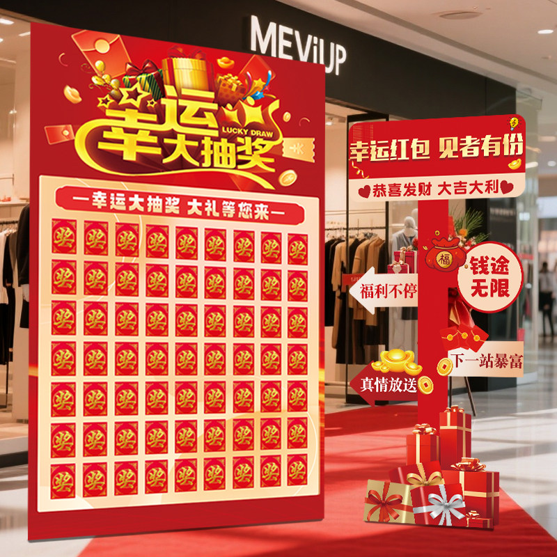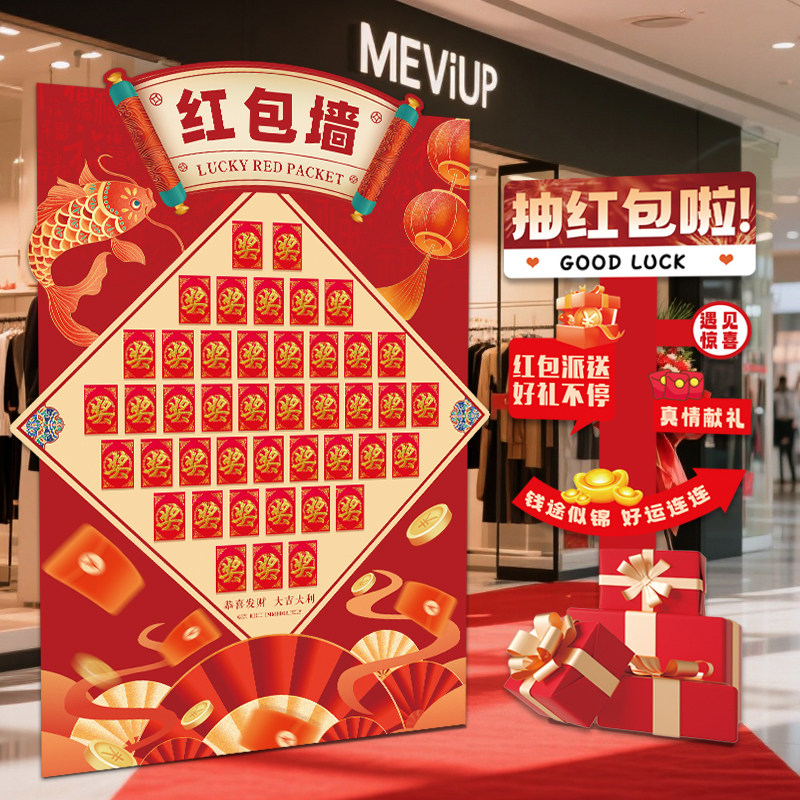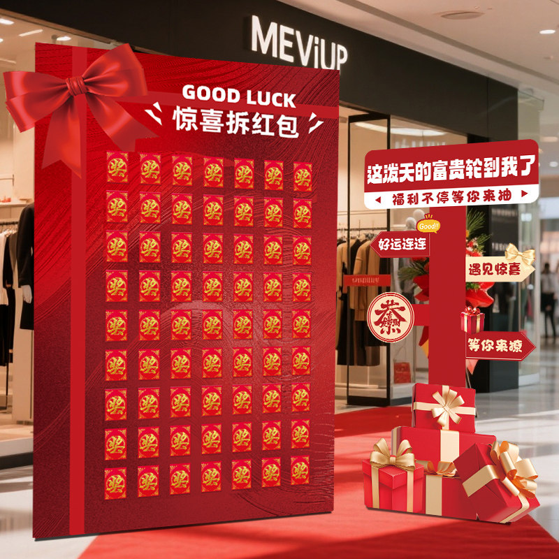 📚 五一劳动节抽奖幸运红包墙kt板场景布置盲盒氛围开业周年店庆活动