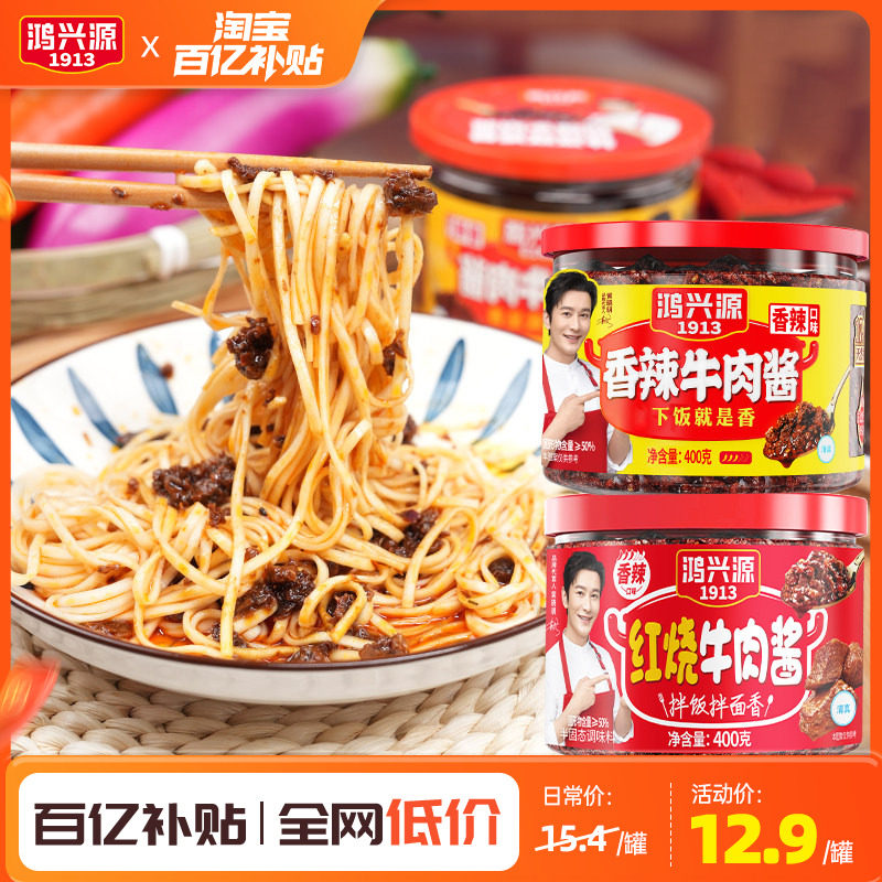📚 鸿兴源牛肉酱下饭拌面佐餐调味酱大块牛肉不辣夹馍酱400g辣椒酱