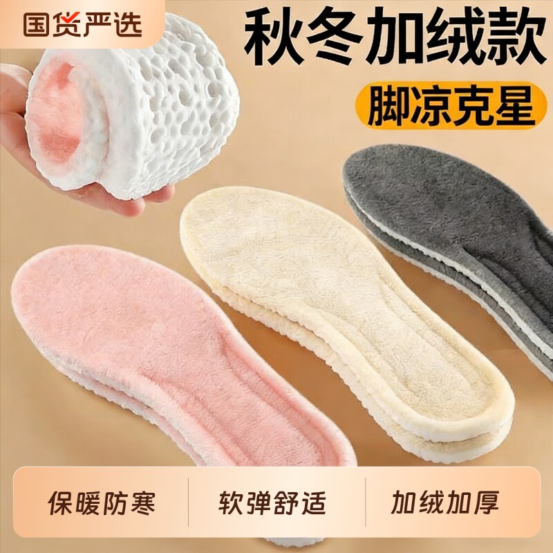 📚 秋冬季保暖加绒鞋垫女款加厚舒适运动防寒男士防臭羊毛毛绒踩屎感