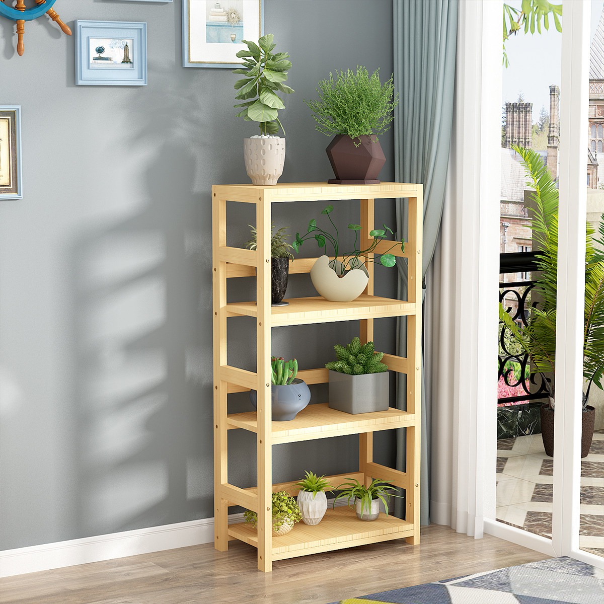 📚 书架宽30实木置物架落地式排骨架货架厨房多功能猫狗粮阳台收纳架