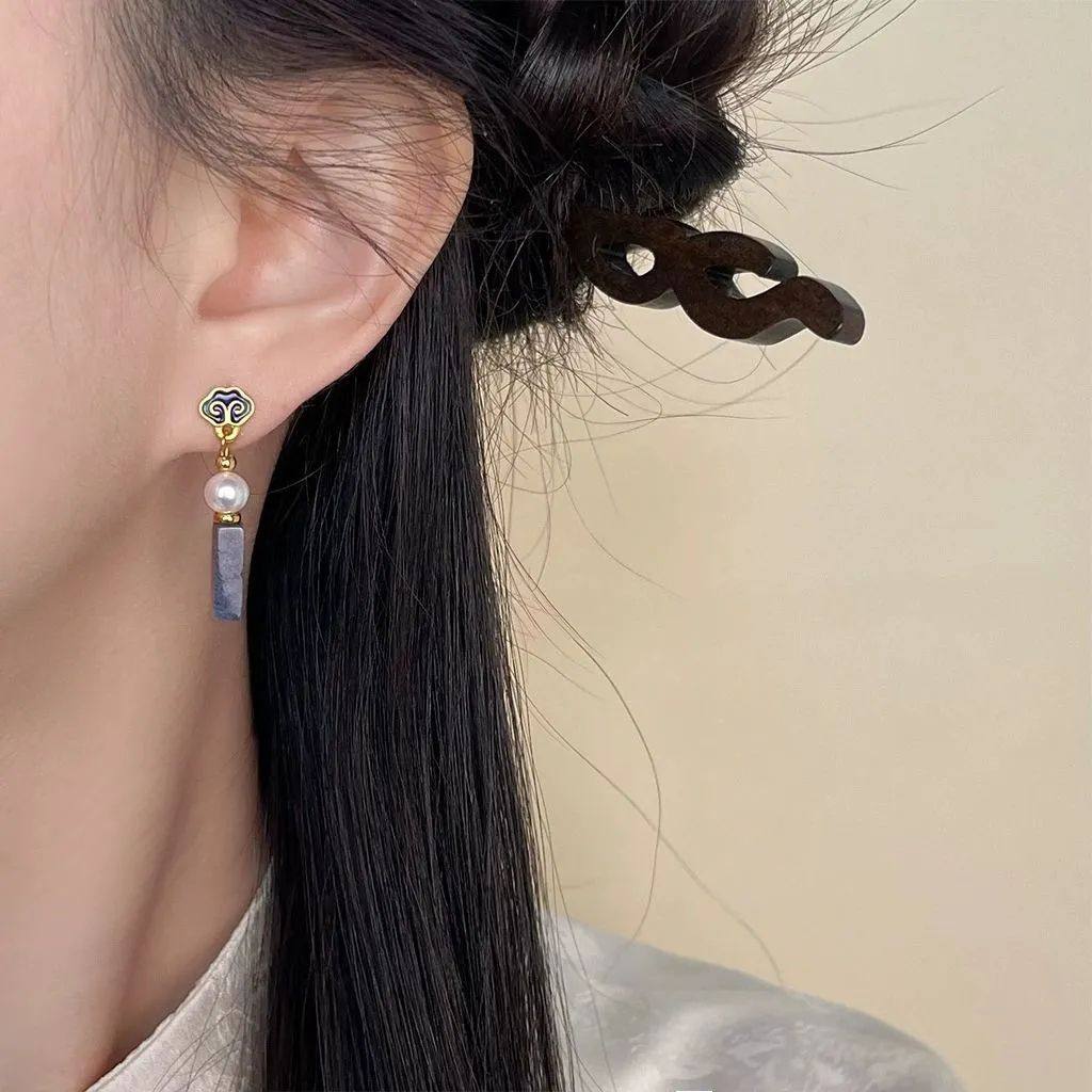 📚 国风原创珍珠滴油纹样耳环复古文艺古风耳钉新中式高级感耳饰