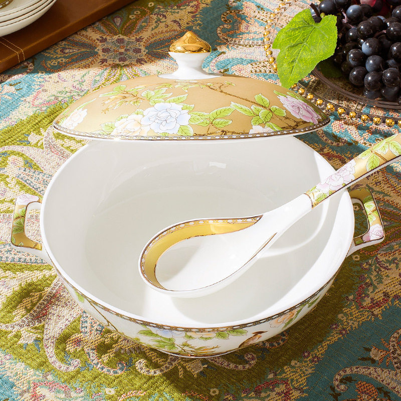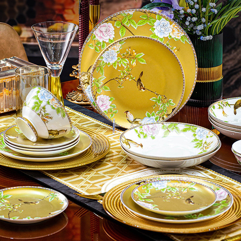 📚 琴瑟和鸣碗碟轻奢套装家用骨瓷洛威餐具套装套餐碗盘2024乔迁新婚