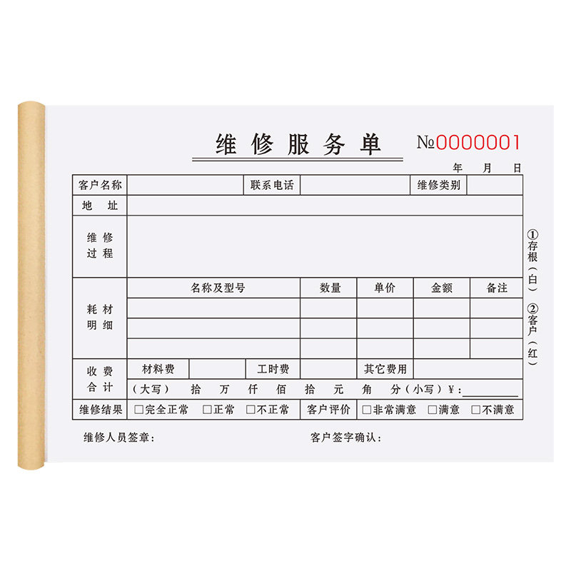 📚 维修单二联定制保修收据家电记录本电梯工时单空调售后维修服务单