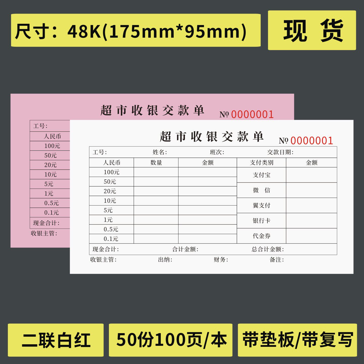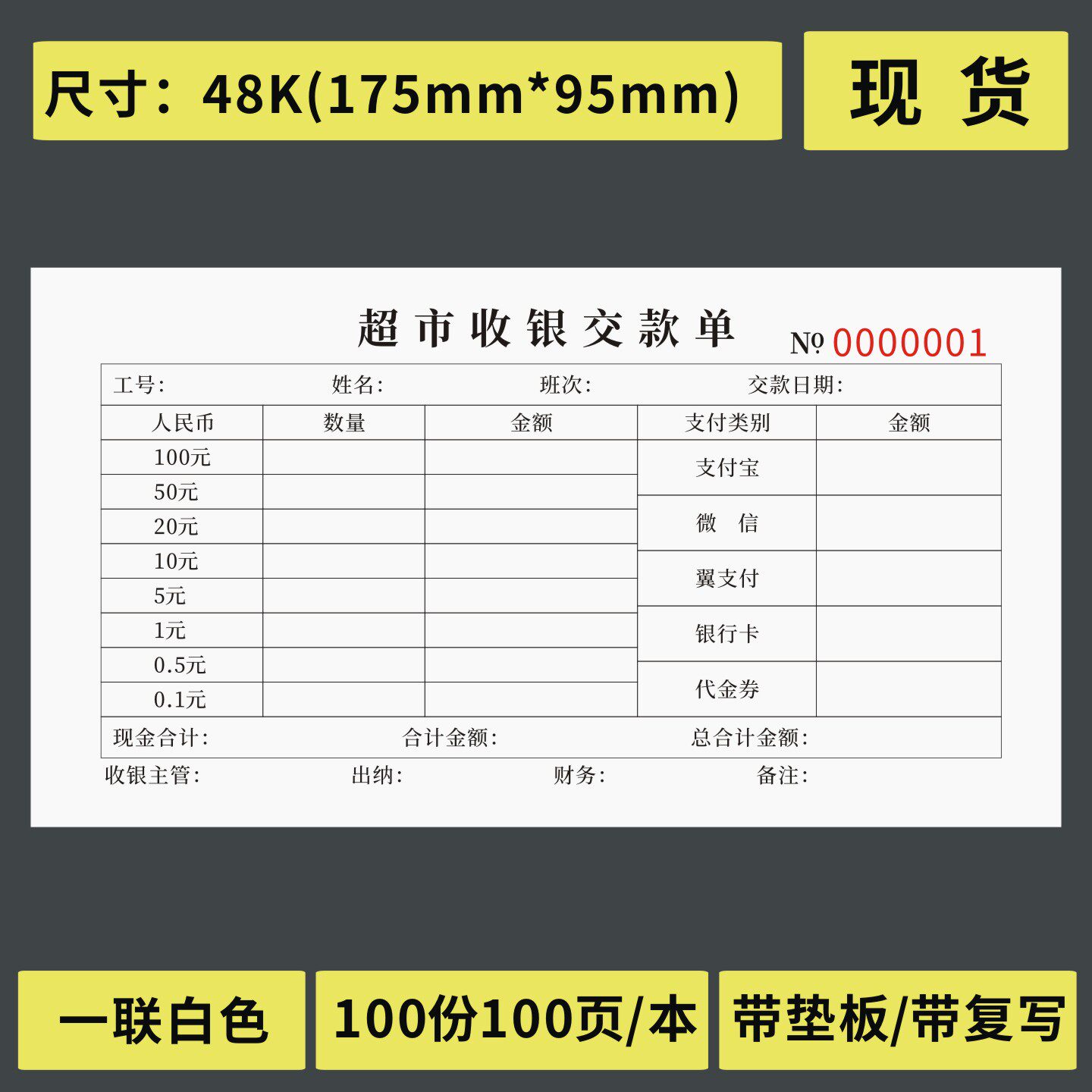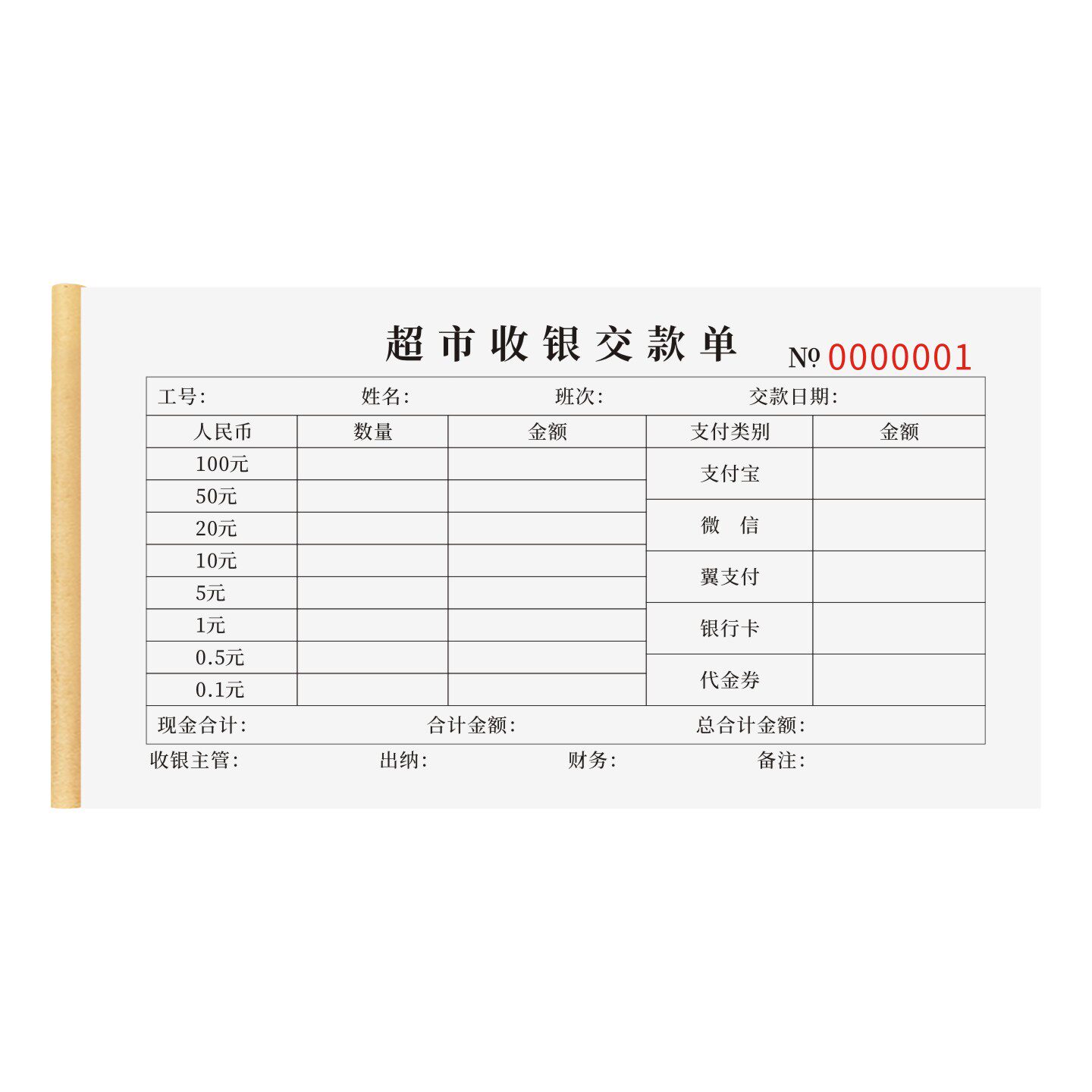 📚 超市收银交款单商场收银柜台缴款交接本便利店日收入账单记录表