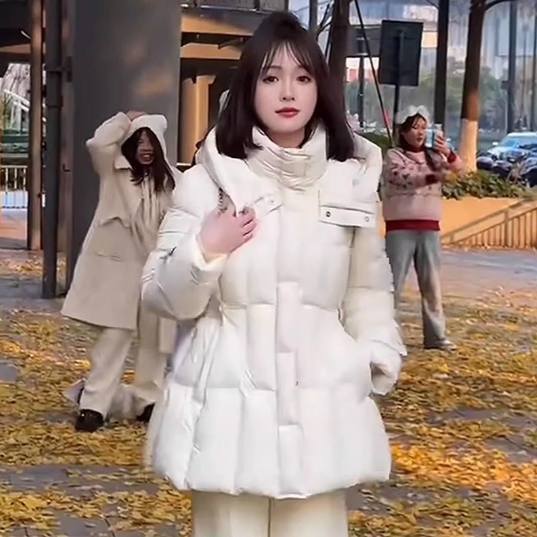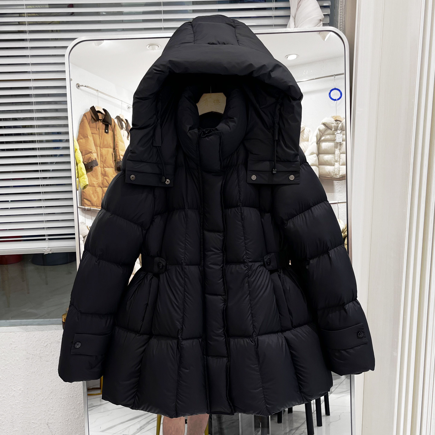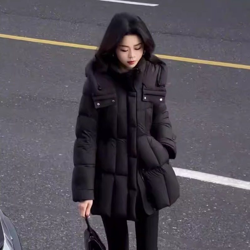 📚 新国标90%白鸭绒 女士韩版小个子修身显瘦小蛮腰连帽中长款羽绒服