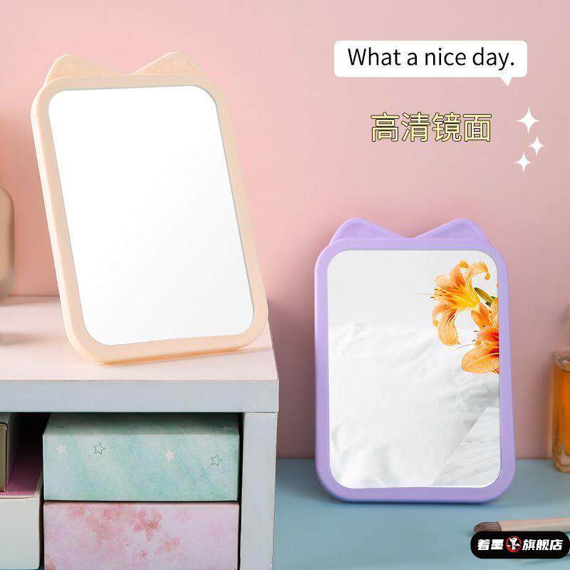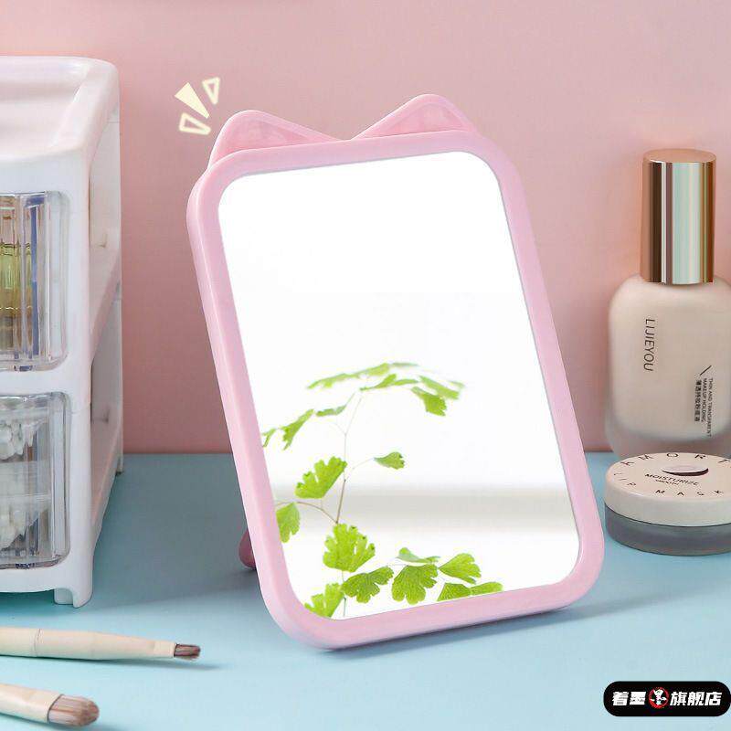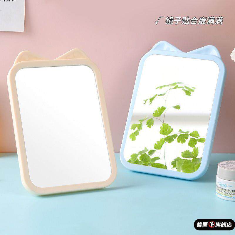 📚 可挂可立两用化妆镜卡通猫耳台式简易学生补妆镜折叠随身梳妆镜
