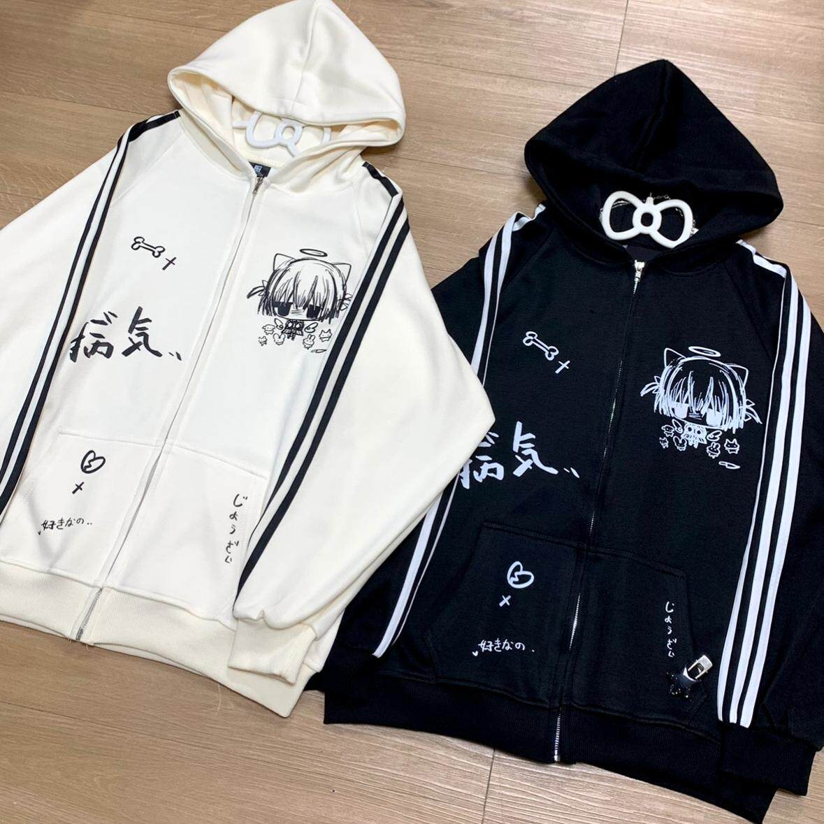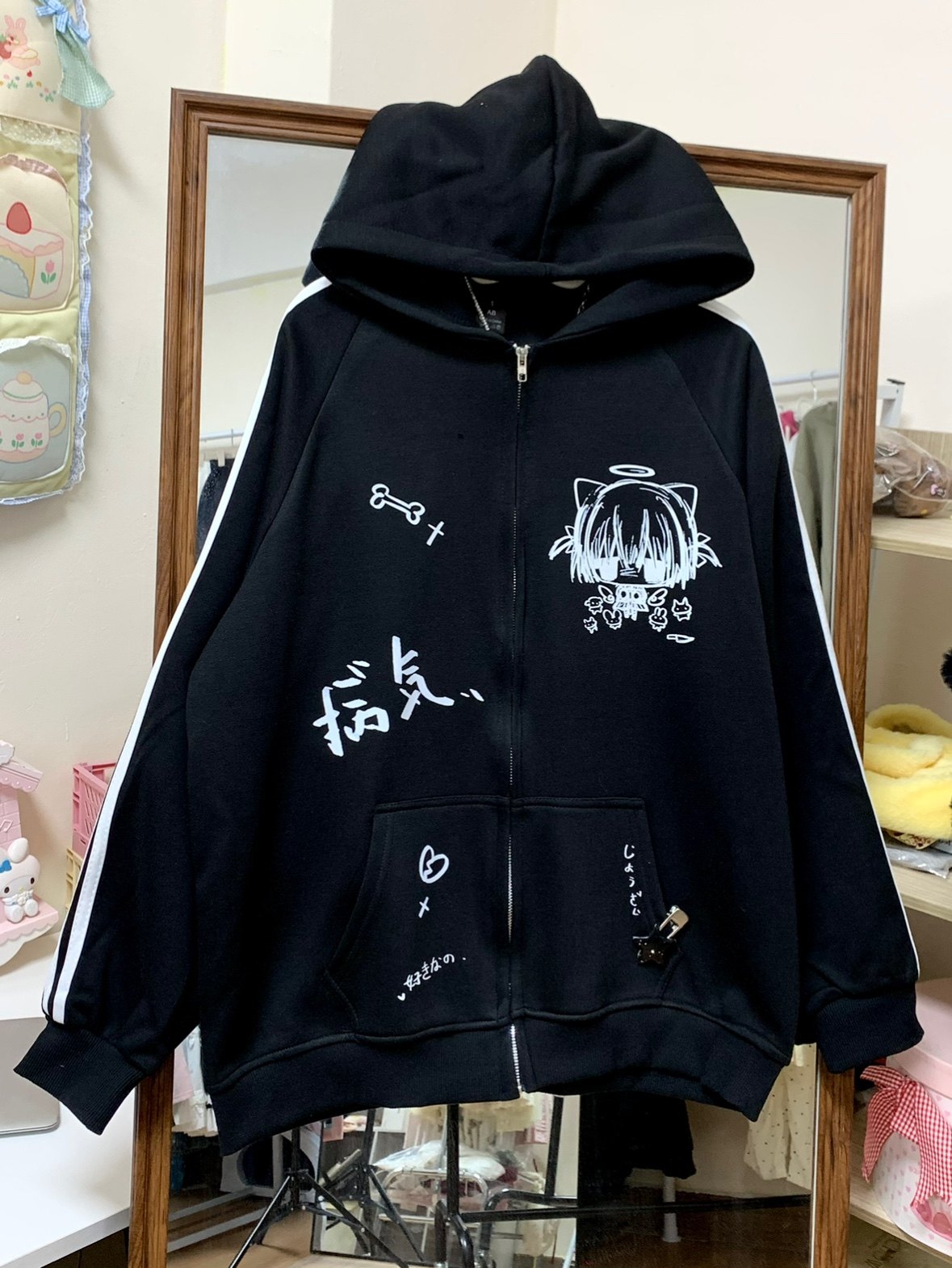 📚 原创日系宅萌三道杠涂鸦印花早秋拉链外套亚文化连帽纯棉开衫卫衣