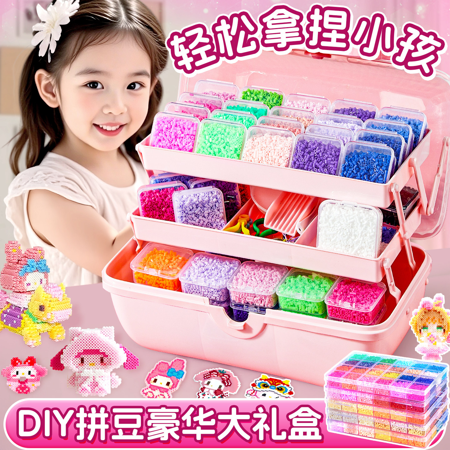 📚 拼豆豆手工diy材料全套2.6mm拼豆融合豆立体mard拼豆玩具盒装工具