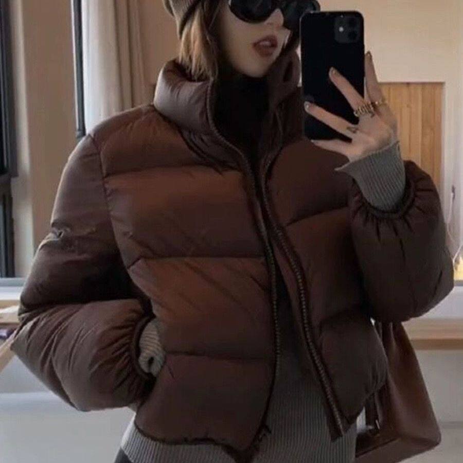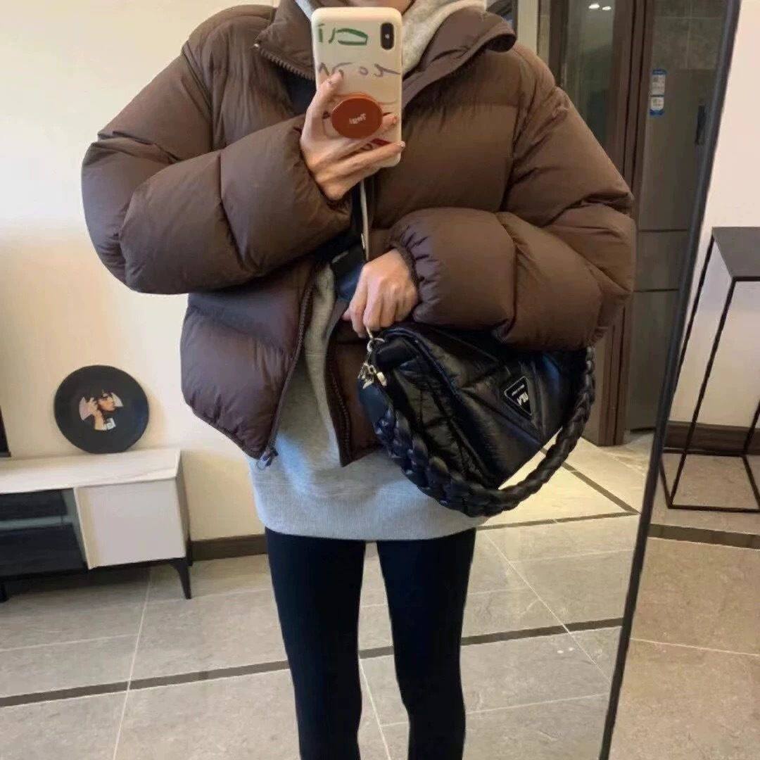 📚 白鸭绒肯豆羽绒服女短款欧版咖色宽松立领加厚高腰面包服潮防寒