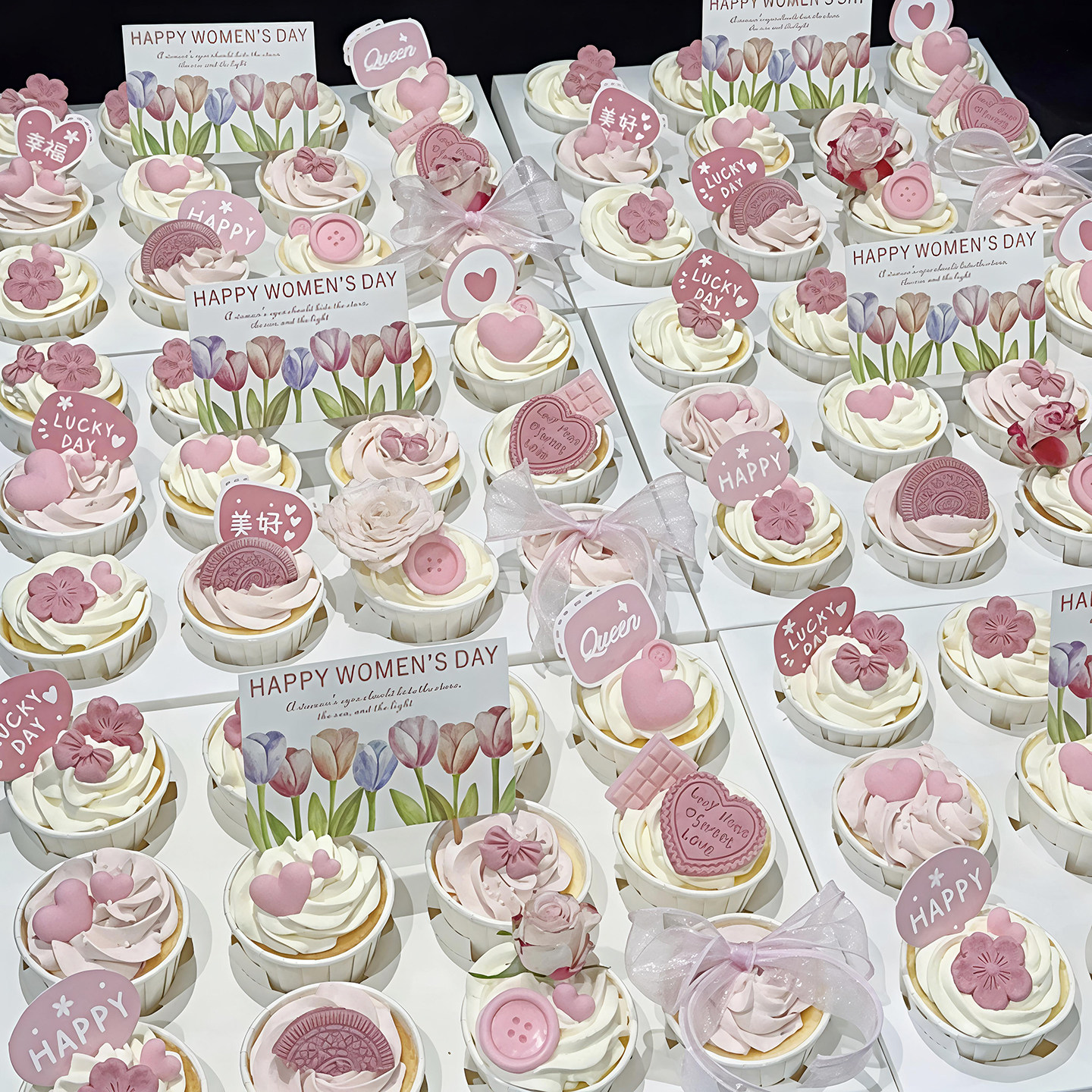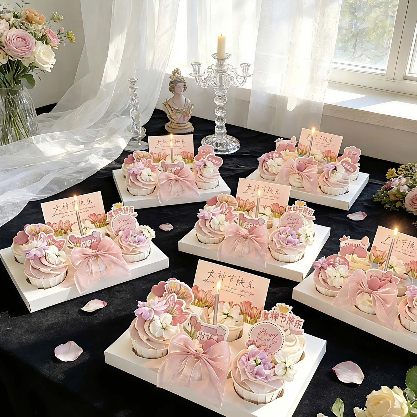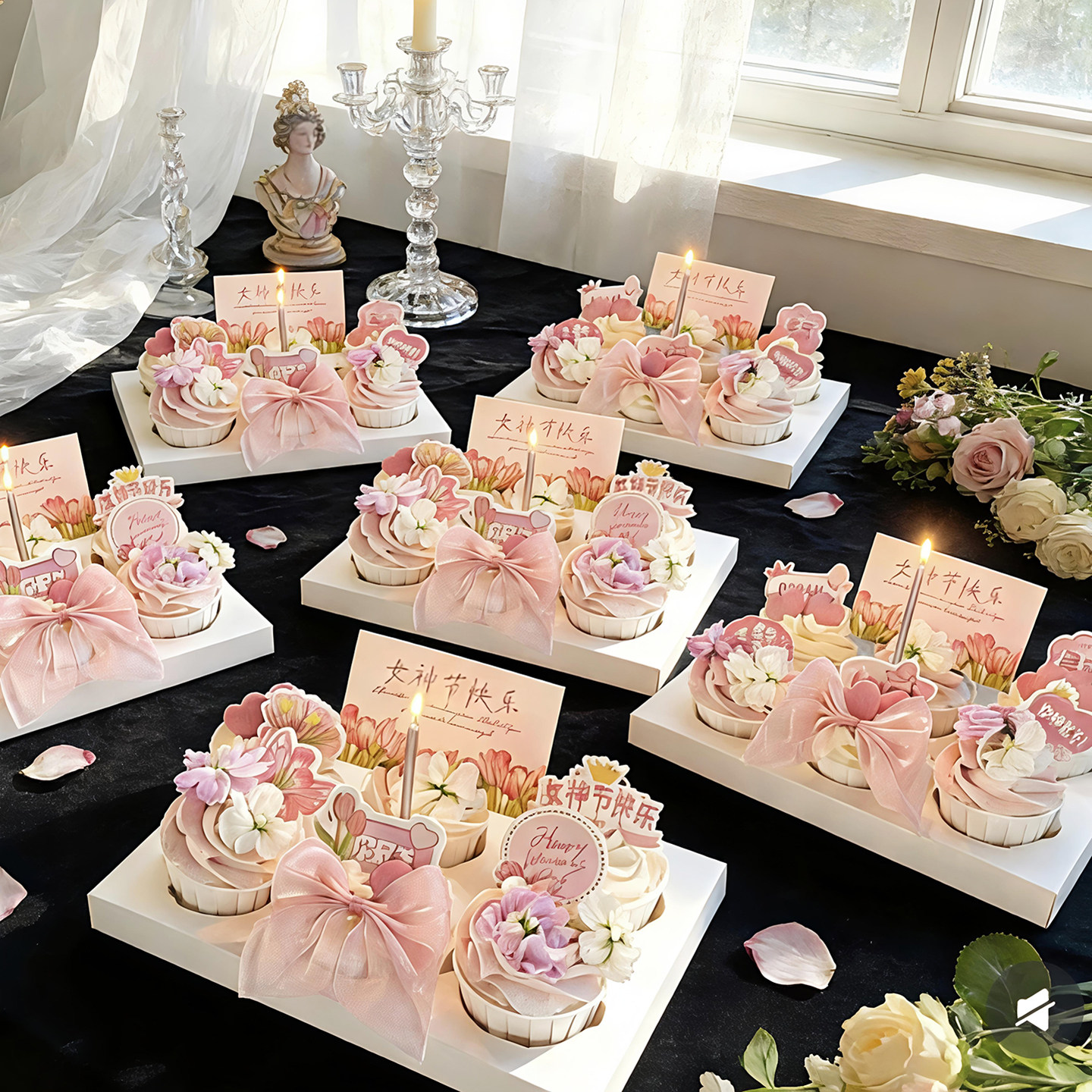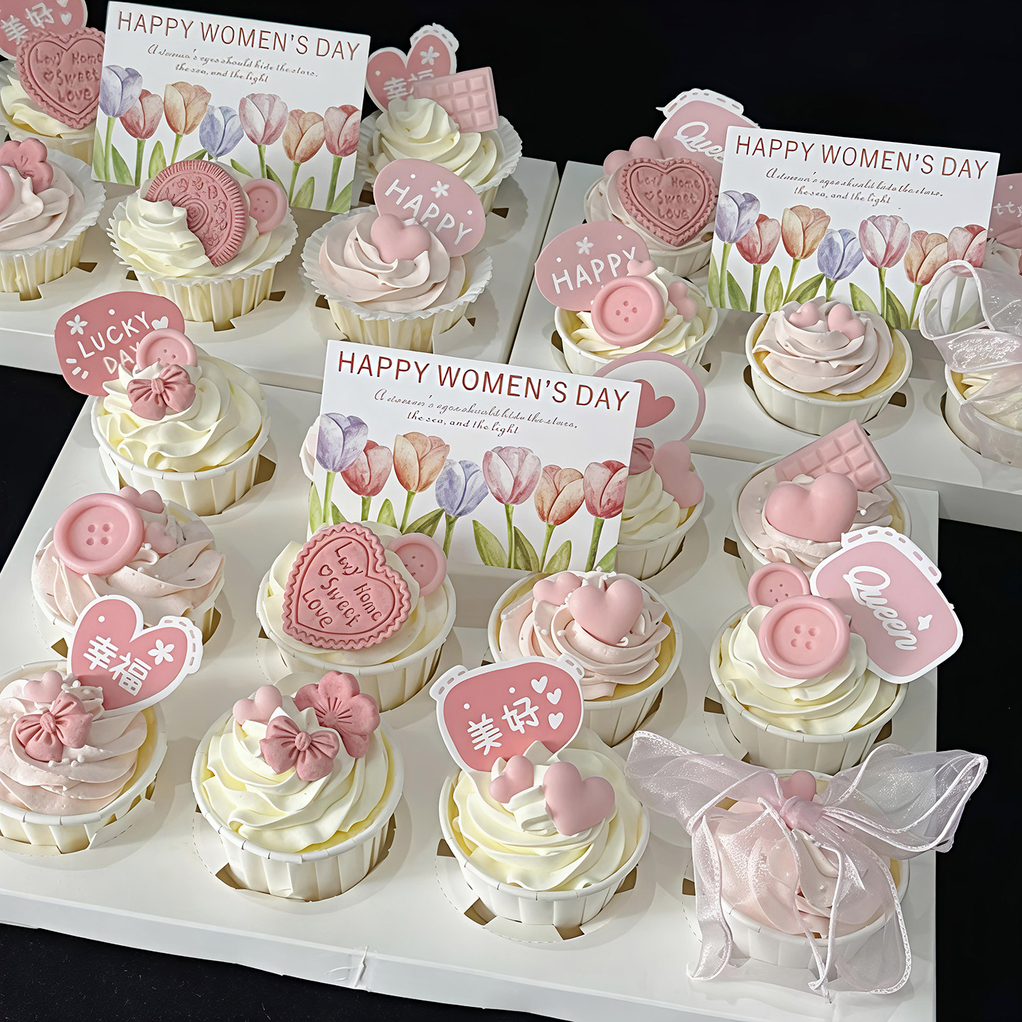 📚 网红38女神节快乐纸杯蛋糕装饰插卡妈妈妇女节郁金香蝴蝶结插件