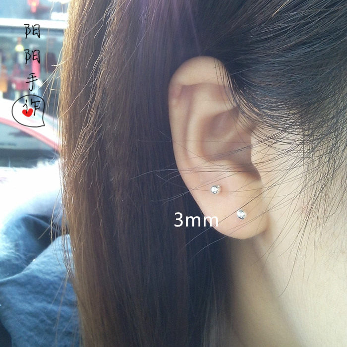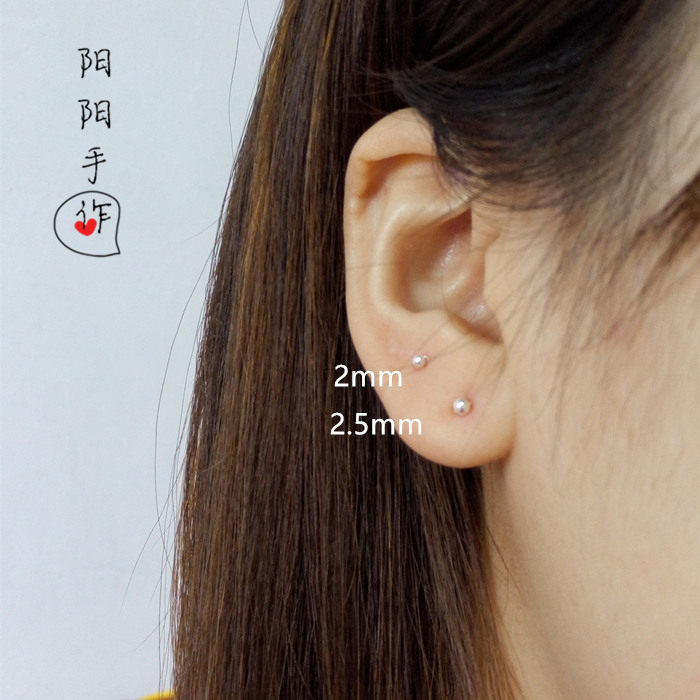 📚 手工极小2/2.5mm纯银珠小圆点999足银纯银耳钉耳骨钉养耳防过敏女