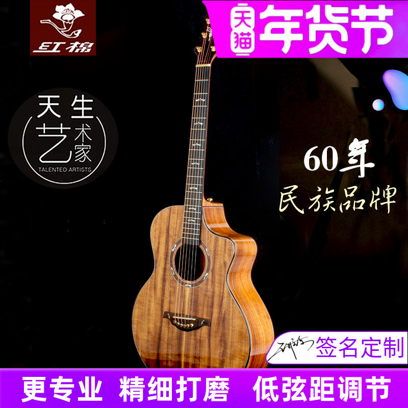 📚 红棉手工加震全单吉他41寸演奏级36 38便携旅行男女单板民谣电箱