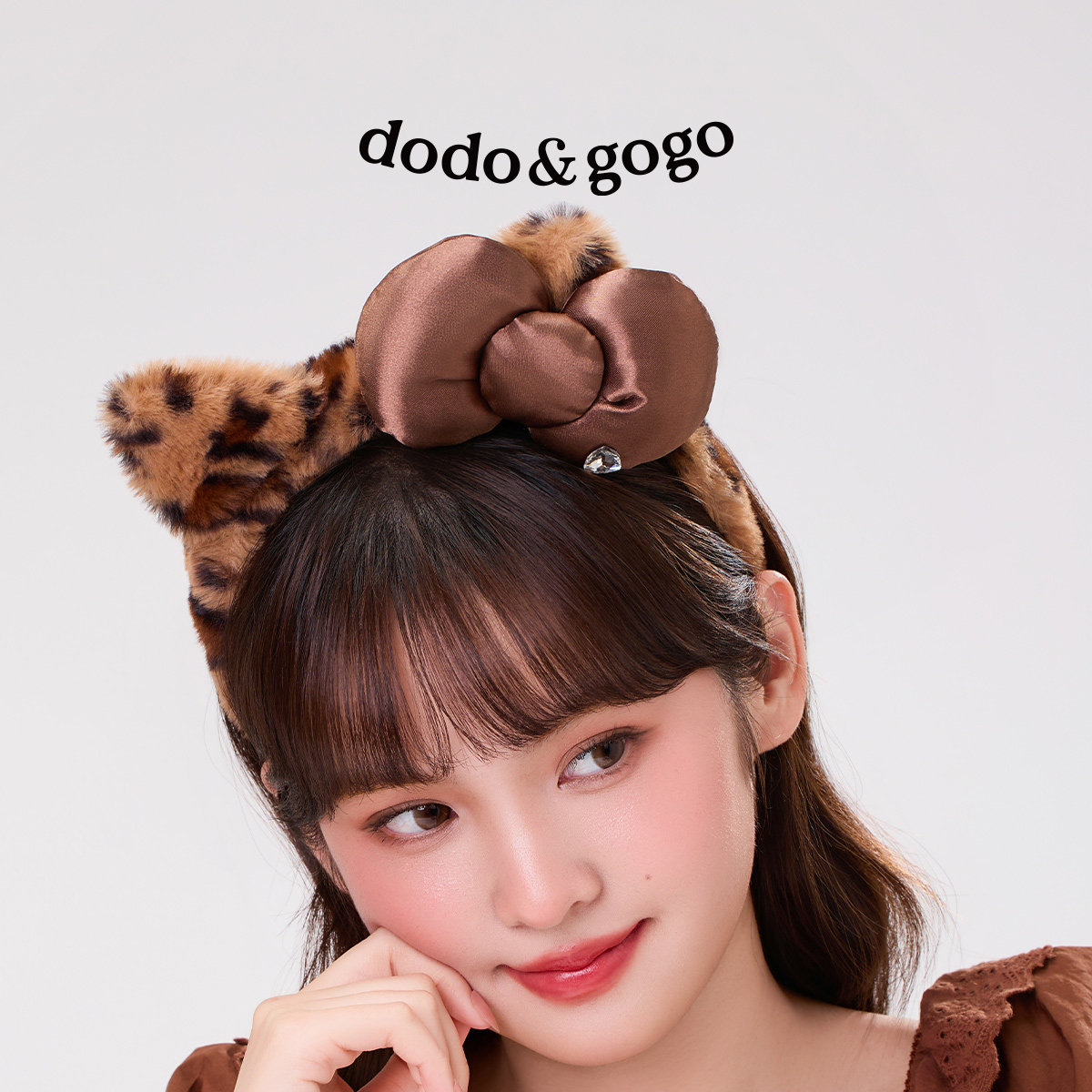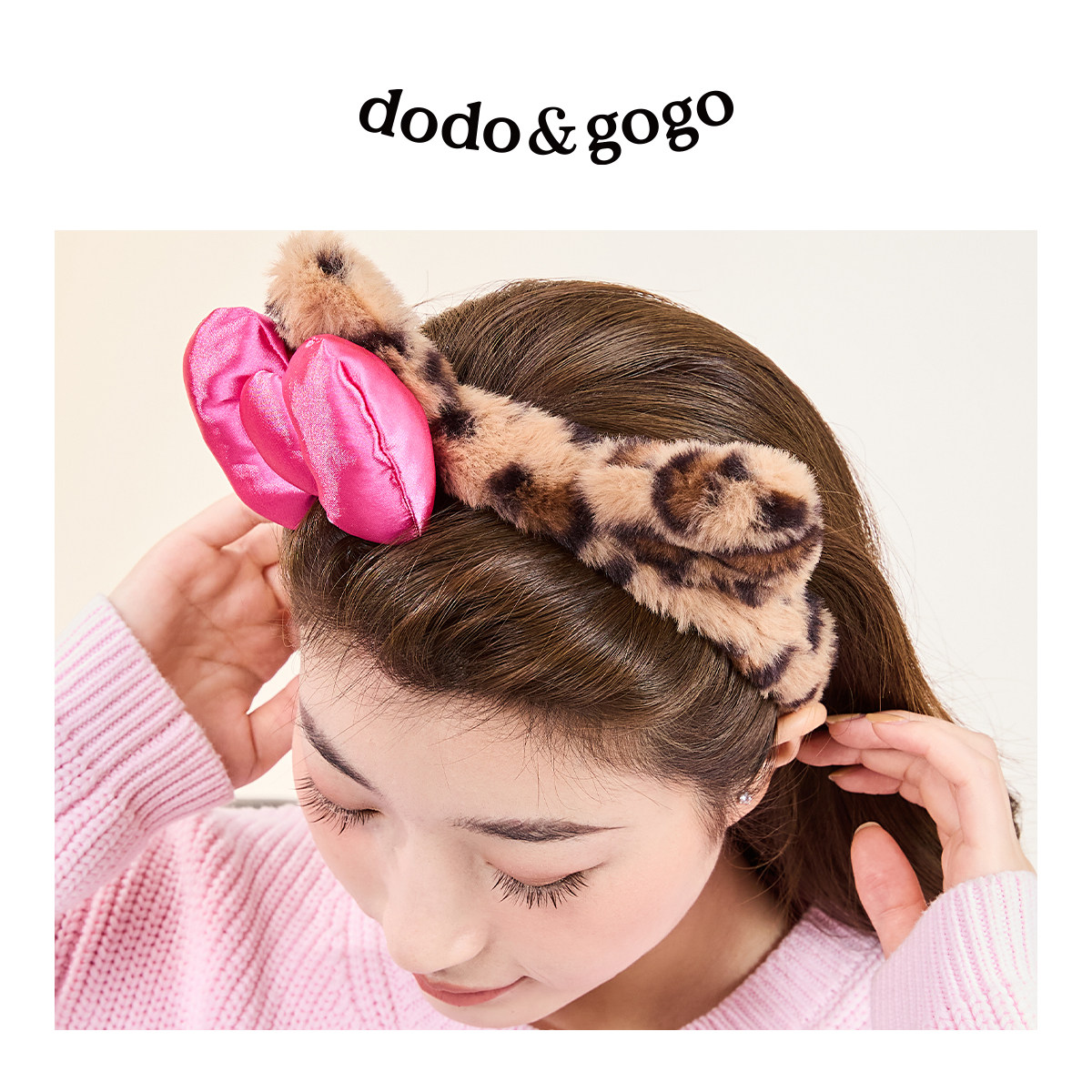 📚 DODOGOGO豹纹毛绒洗脸发箍女2025新款秋冬可爱蝴蝶结头箍发捆发卡