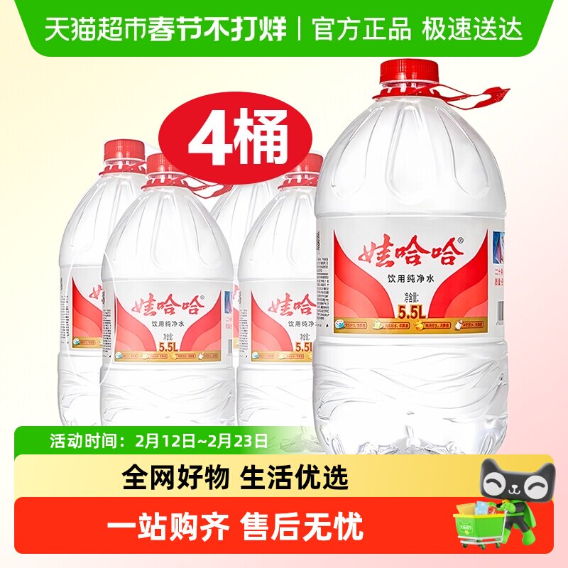 📚 娃哈哈纯净水5.5L*4桶装大桶水家用办公泡茶饮用非矿泉水送货上门