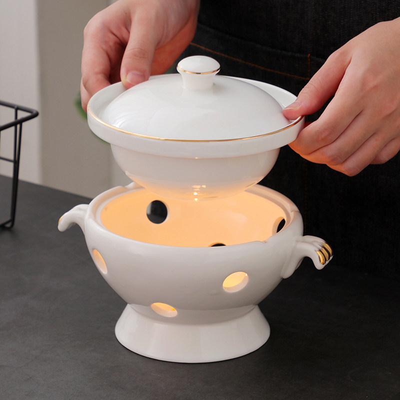 📚 酒店海参捞饭燕窝雪蛤鱼翅辽参盅鲍鱼河豚位盅蜡烛加热碗保温餐具