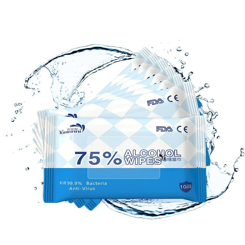 📚 75酒精湿巾10片装卫生湿巾纸免洗清洁湿巾alcohol英文小包便携装