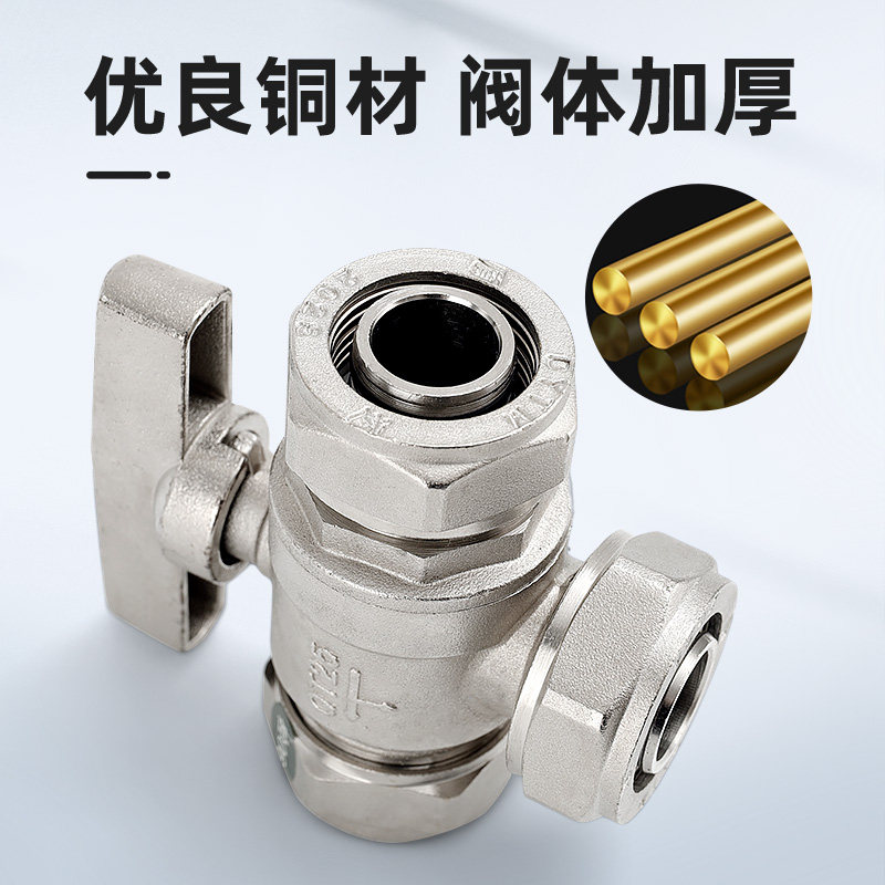 📚 全铜铝塑管三通球阀1620/2025加厚活接热水器水管一分二开关配件