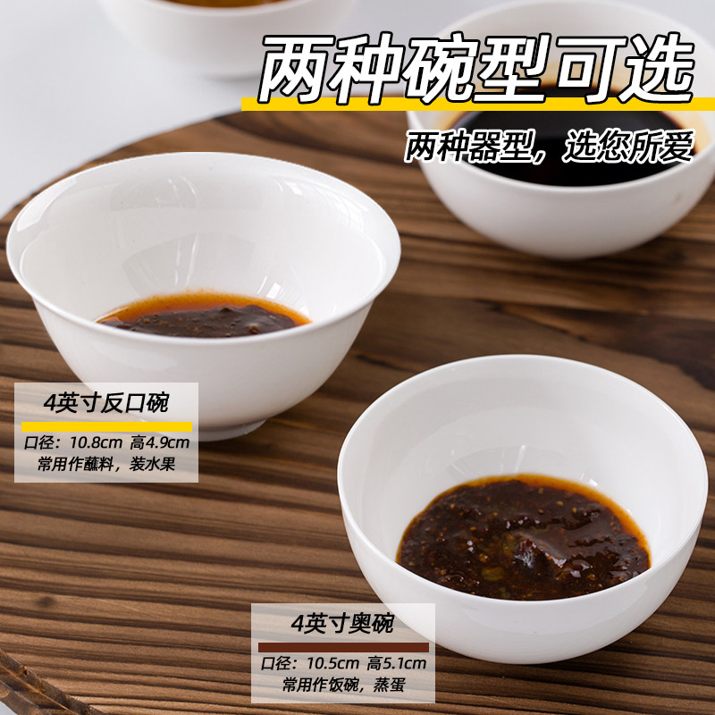 📚 简约创意蘸料甜品小碗家用骨瓷4寸纯白餐具调味米饭菜碗自选组合
