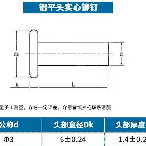 📚 平头实心铝铆钉毛钉敲击平底铁锅炒锅帽钉混装修补刀柄铭牌丁手打