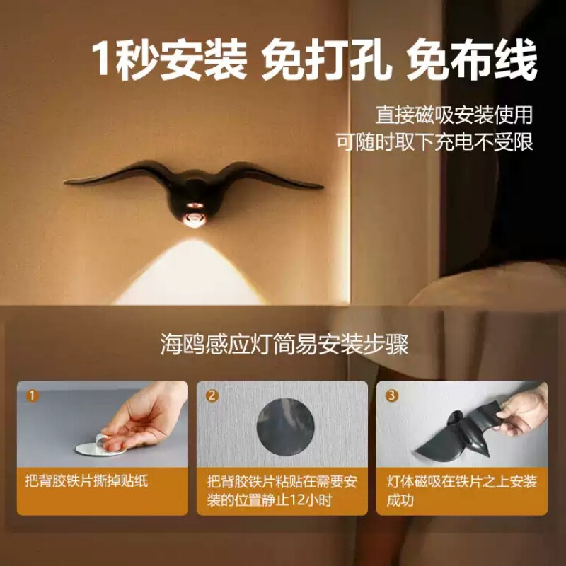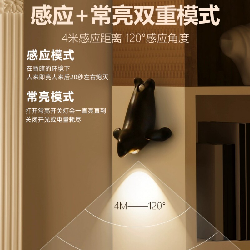 📚 小海狮人体感应小夜灯磁吸免布线生日礼物家用入户卧室简约台壁灯