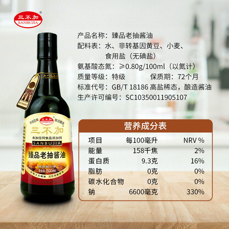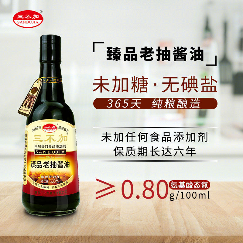 📚 三不加臻品老抽500ml无碘盐无加糖酱油纯粮酿造烧菜家用调料